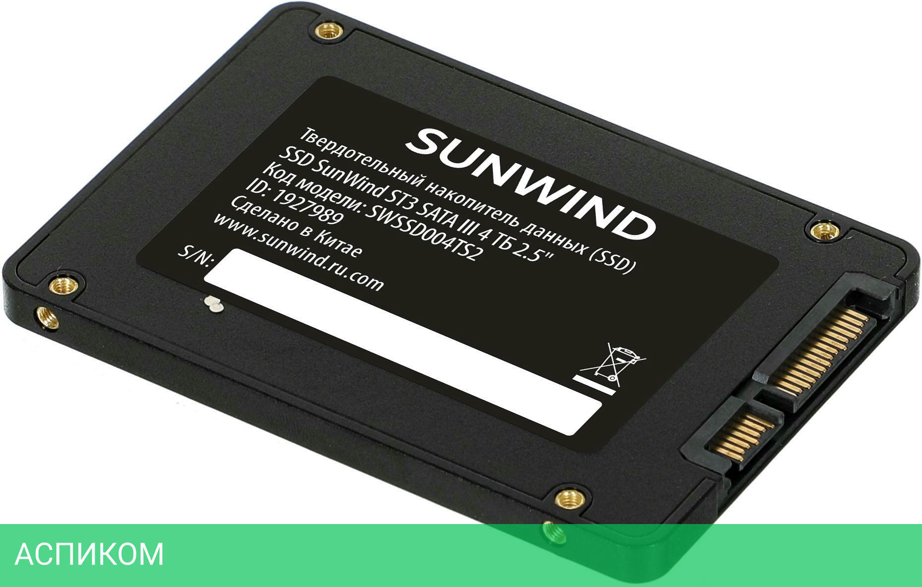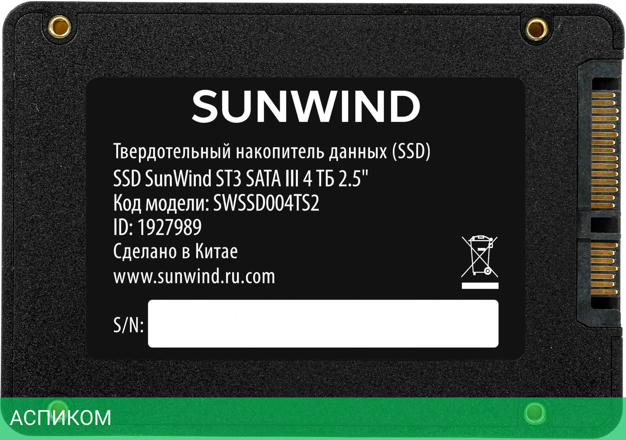 SSD диск SunWind ST3 4TB (SWSSD004TS2)/2.5"/4 ТБ/SATA 3.0 (6Gbps)/500MBs/440MBs/1.5M MTBF/1280TBW/RTL