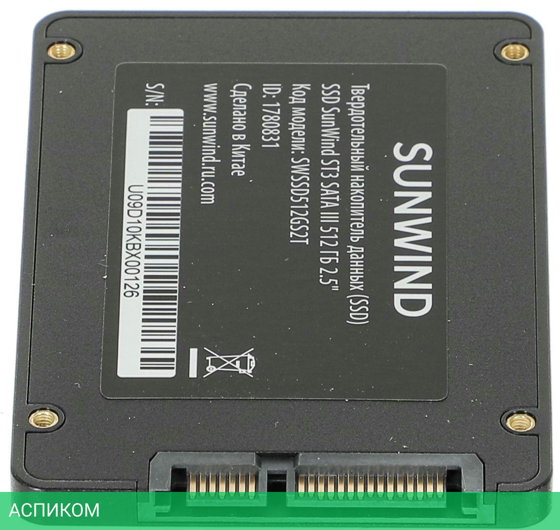 SSD диск SunWind ST3 512GB (SWSSD512GS2T)/2.5"/512 ГБ/SATA 3.0 (6Gbps)/500MBs/450MBs/1.5M MTBF/3D TLC NAND/160TBW/RTL