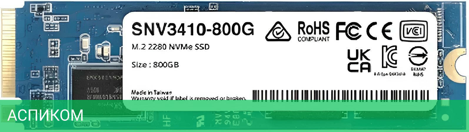 SSD диск Synology SNV3410-800G/M.2/800 ГБ/PCI Express 3.0 x4/3100MBs/1000MBs/400K IOPS/70K IOPS