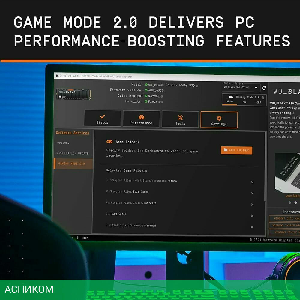 SSD диск WD Black SN850X 1TB M.2 2280 (WDS100T2XHE)/M.2/1 ТБ/PCI Express 4.0 x4/7300MBs/6300MBs/800K IOPS/1100K IOPS/1.8M MTBF/3D TLC NAND/600TBW/RTL