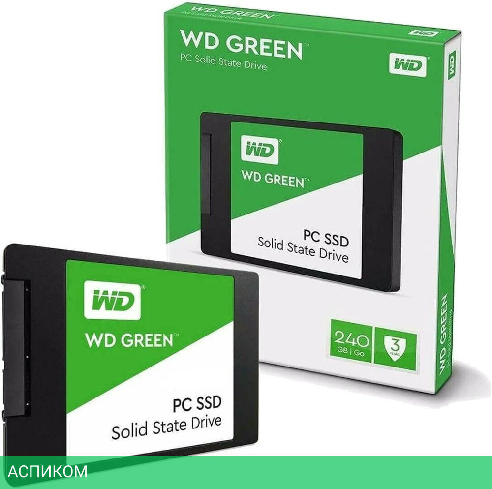SSD диск WD Green 1TB (WDS100T3G0A)/2.5"/1 ТБ/SATA 3.0 (6Gbps)/545MBs/465MBs/1M MTBF/TLC