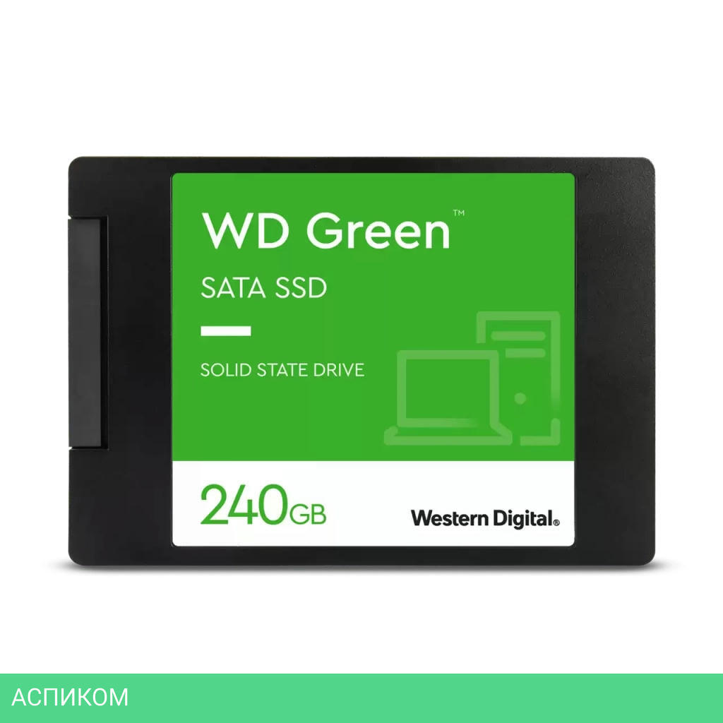 SSD диск WD Green 240GB (WDS240G3G0A)/2.5"/240 ГБ/SATA 3.0 (6Gbps)/545MBs/465MBs/1M MTBF/TLC/RTL