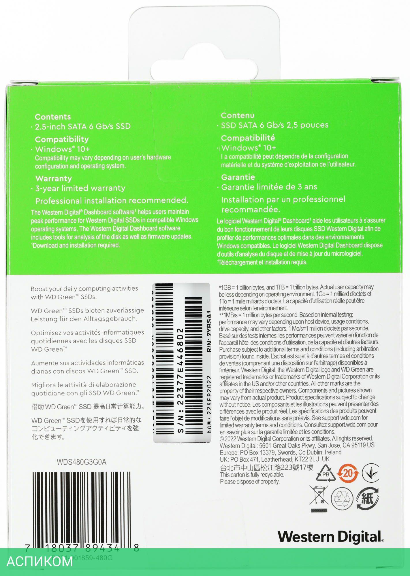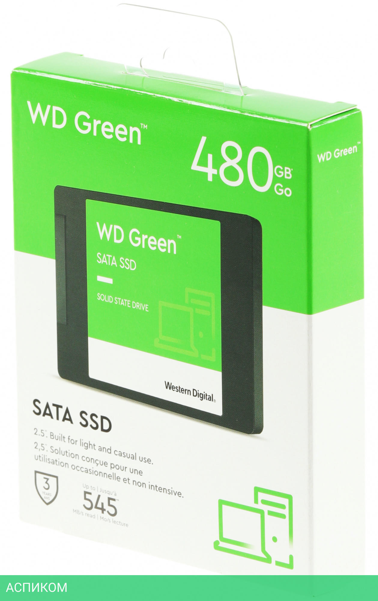 SSD диск WD WDS480G3G0A/2.5"/480 ГБ/SATA/545MBs/460MBs/1M MTBF/3D TLC NAND