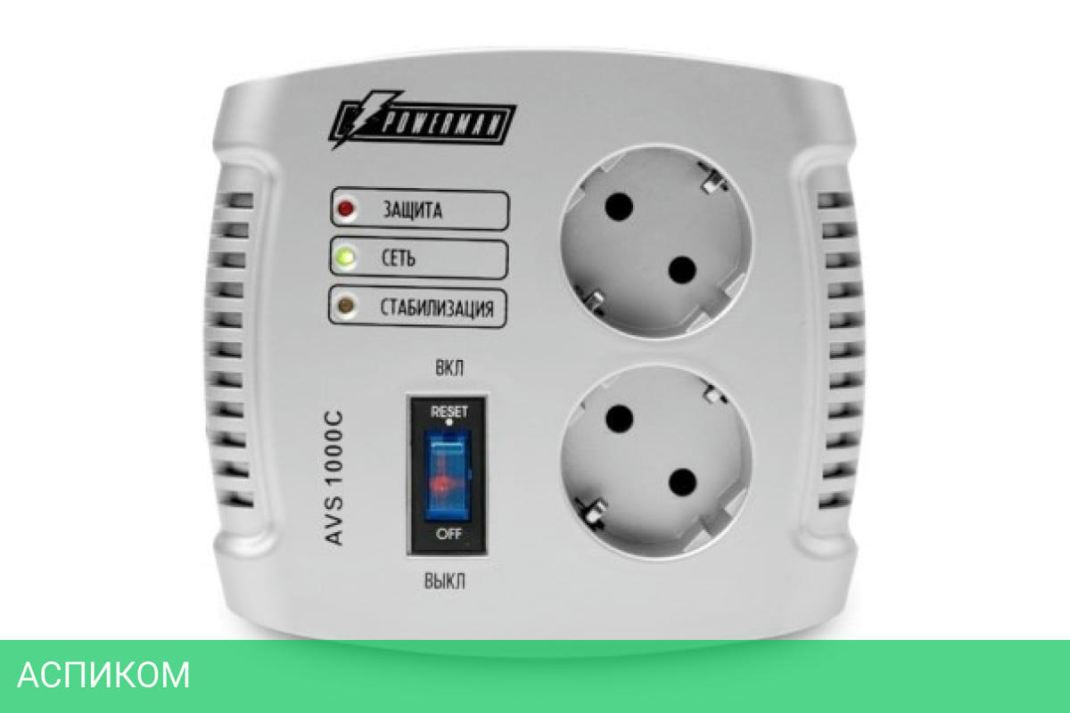 стабилизатор / 500.0 / 1000.0 / 2 / черный; серебристый / Schuko (евро с заземлением) / Schuko (евро с заземлением) / 98