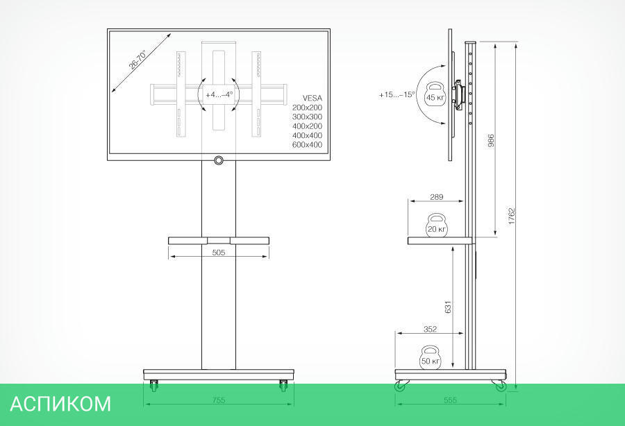 стойка / для проектора; для проекционного экрана / черный