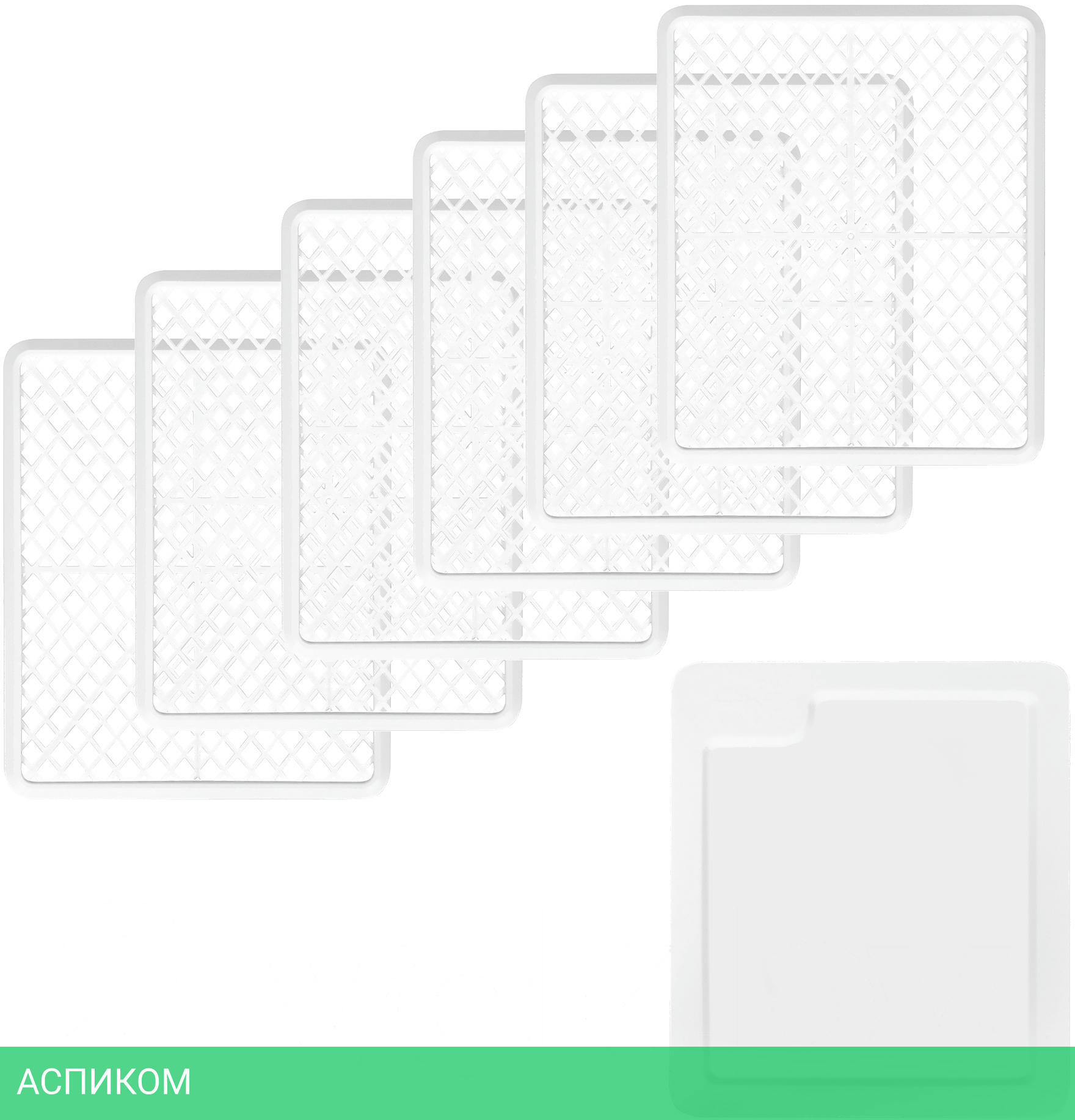 - сушильная камера для продуктов;- 6 пластиковых поддонов;- поддон для жидкости;- руководство пользователя.