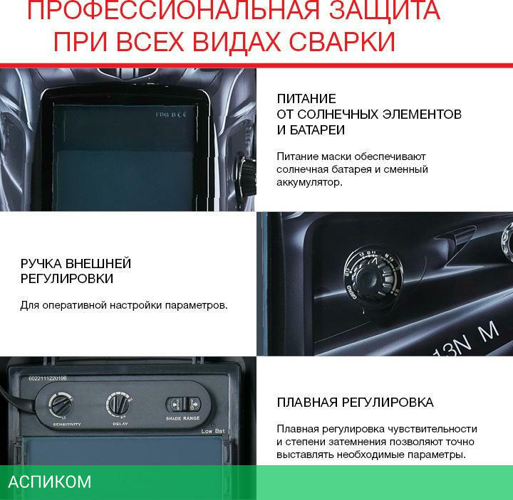 маска сварочная / активная / MMA; TIG; MIG/MAG / 1/1/1/2 / 4 / плавная / 5.0 / 0.5 / 13.0