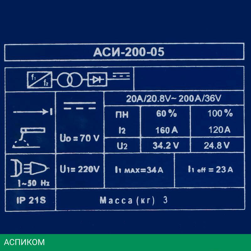 Регулятор установки значения диаметра электрода. Цифровой дисплей, отображающий величину сварочного тока. Плавная регулировка сварочного тока от 20-200 А. Постоянное значение сварочного тока независимое от напряжения сети. Металлический корпус защищает от внешних повреждений.