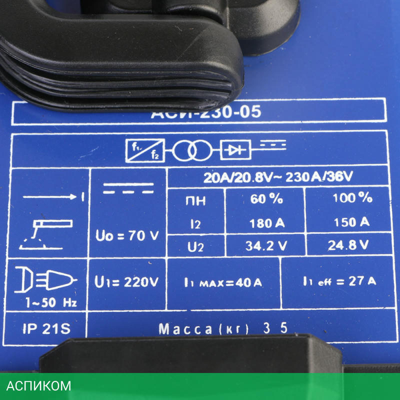 Компактный размер и малый вес в сочетании с большой мощностью аппарата. Регулятор установки значения диаметра электрода. Цифровой дисплей, отображающий величину сварочного тока. Плавная регулировка сварочного тока от 20-230 А. Постоянное значение сварочного тока независимое от напряжения сети.