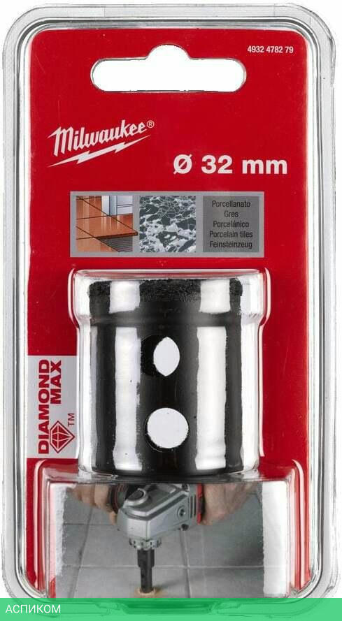сверло / для угловой шлифмашины (болгарки) / для кирпича/камня; для чугуна; для плитки; для фарфора; для стекловолокна; для мрамора / 1