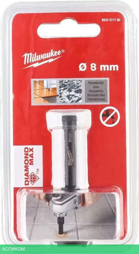 сверло / для перфоратора; для шуруповерта; для угловой шлифмашины (болгарки) / для кирпича/камня; для мрамора; для плитки; для стекловолокна; для фарфора; для чугуна / 1