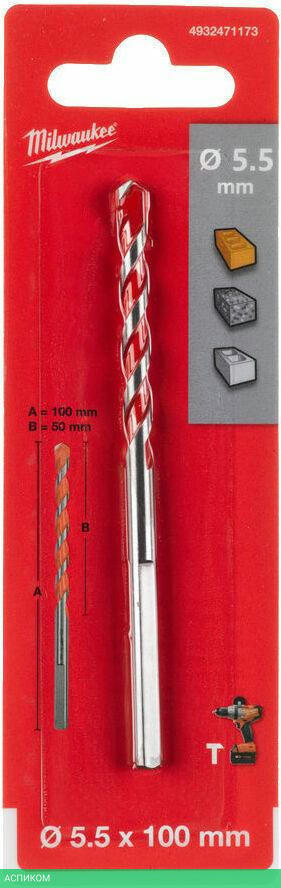 сверло / для дрели / для бетона; для газобетона; для керамогранита; для кирпича/камня; для шифера / 1
