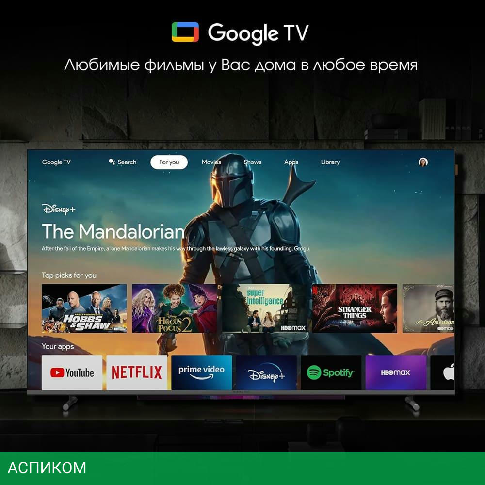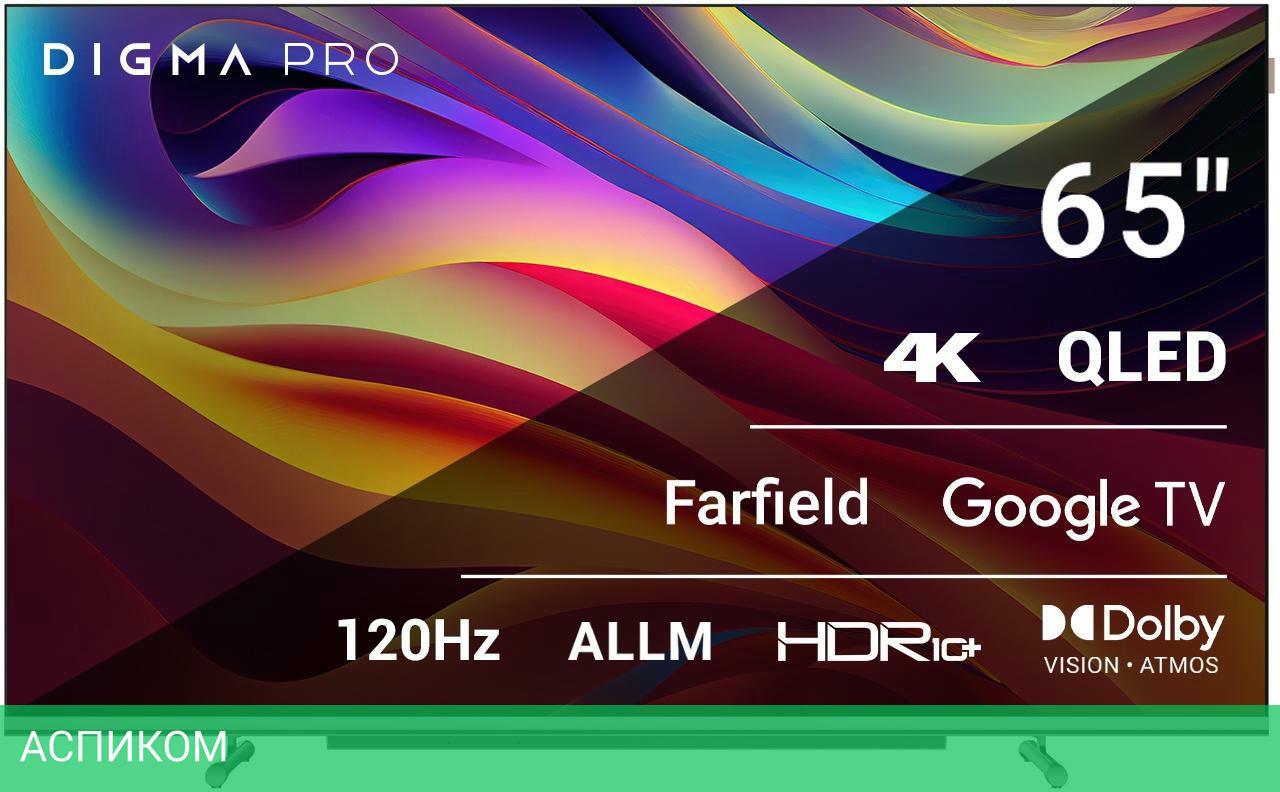 Телевизор Digma Pro 65L черный/серебристый/ЖК/VA/65″/3840x2160 (4K UHD)/120Hz/Frameless/Smart TV/Google TV/Wi-Fi/DVB-С/DVB-S/DVB-S2/DVB-T/DVB-T2/USB 2.0/черный