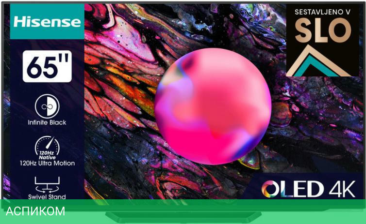 Телевизор Hisense 65A85K/OLED/OLED/65″/3840x2160 (4K UHD)/120Hz/Smart TV/Vidaa/Wi-Fi/черный