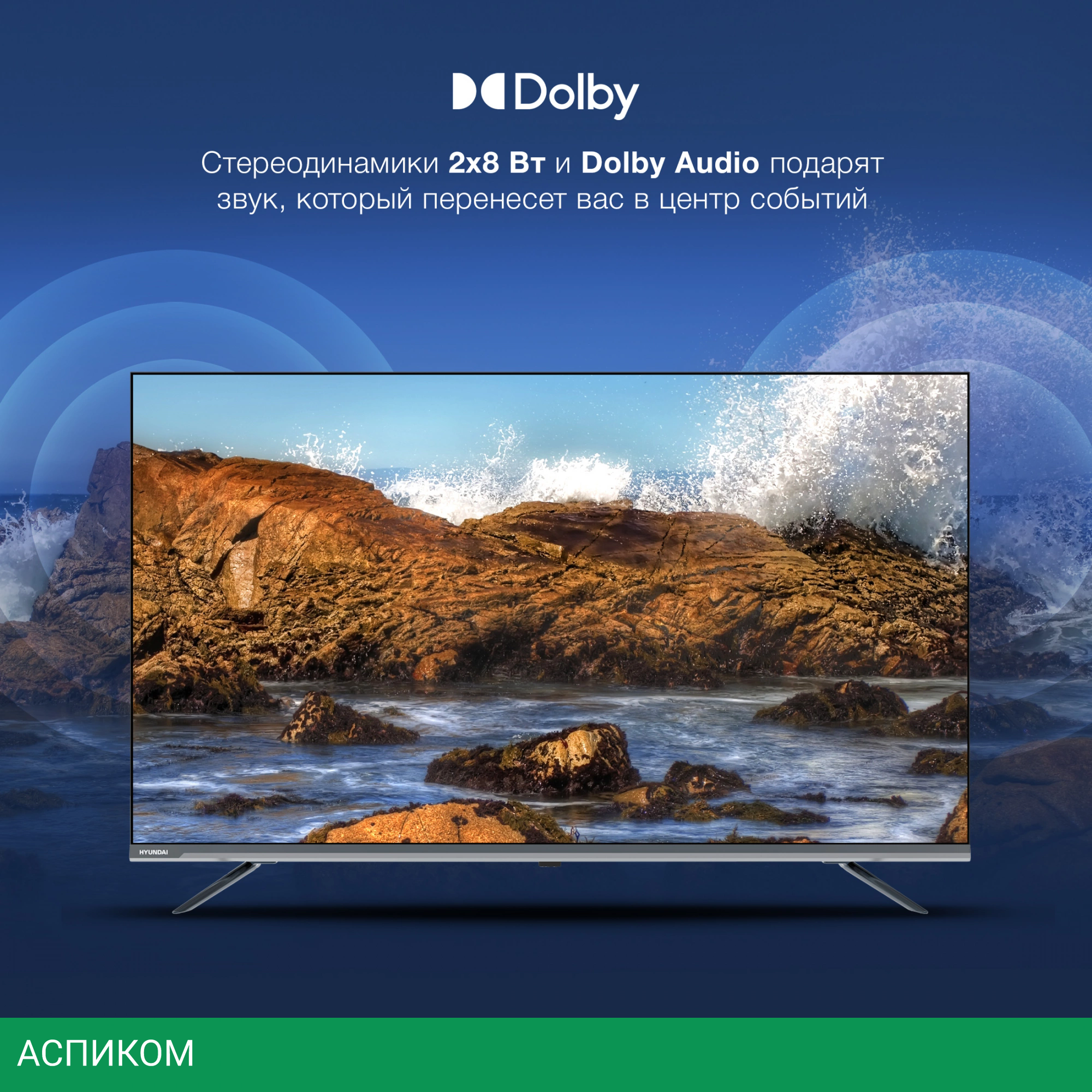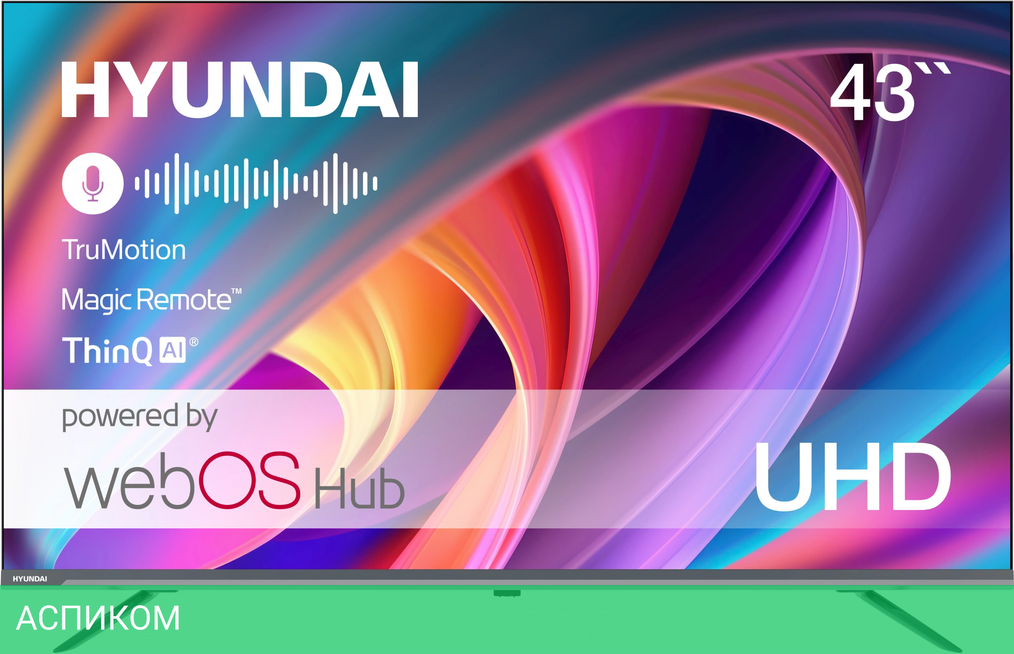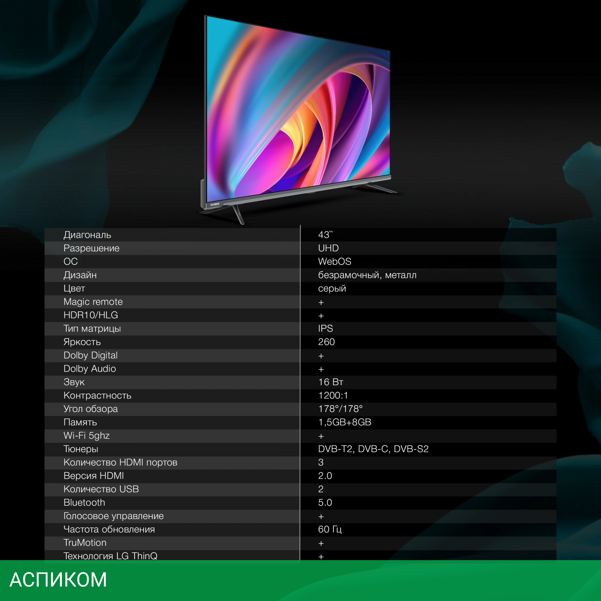 Телевизор Hyundai H-LED43BU7100 серый/LED/IPS/43″/3840x2160 (4K UHD)/60Hz/Frameless/Smart TV/Android TV/BT/Wi-Fi/DVB-С/DVB-S/DVB-S2/DVB-T/DVB-T2/USB 2.0/серый
