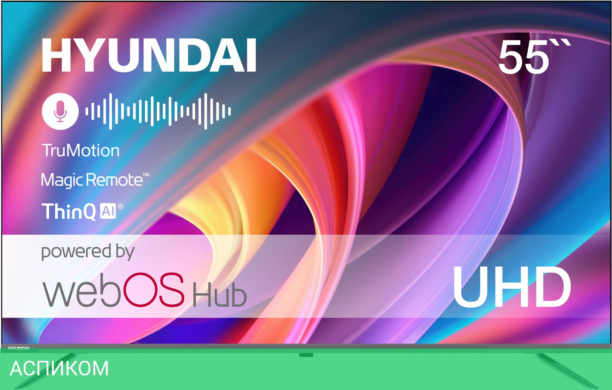 Телевизор Hyundai H-LED55BU7100 серый/LED/LED/55″/3840x2160 (4K UHD)/60Hz/Frameless/Smart TV/Smart TV/Wi-Fi/DVB-C/DVB-S/DVB-S2/DVB-T/DVB-T2/USB 2.0/серый