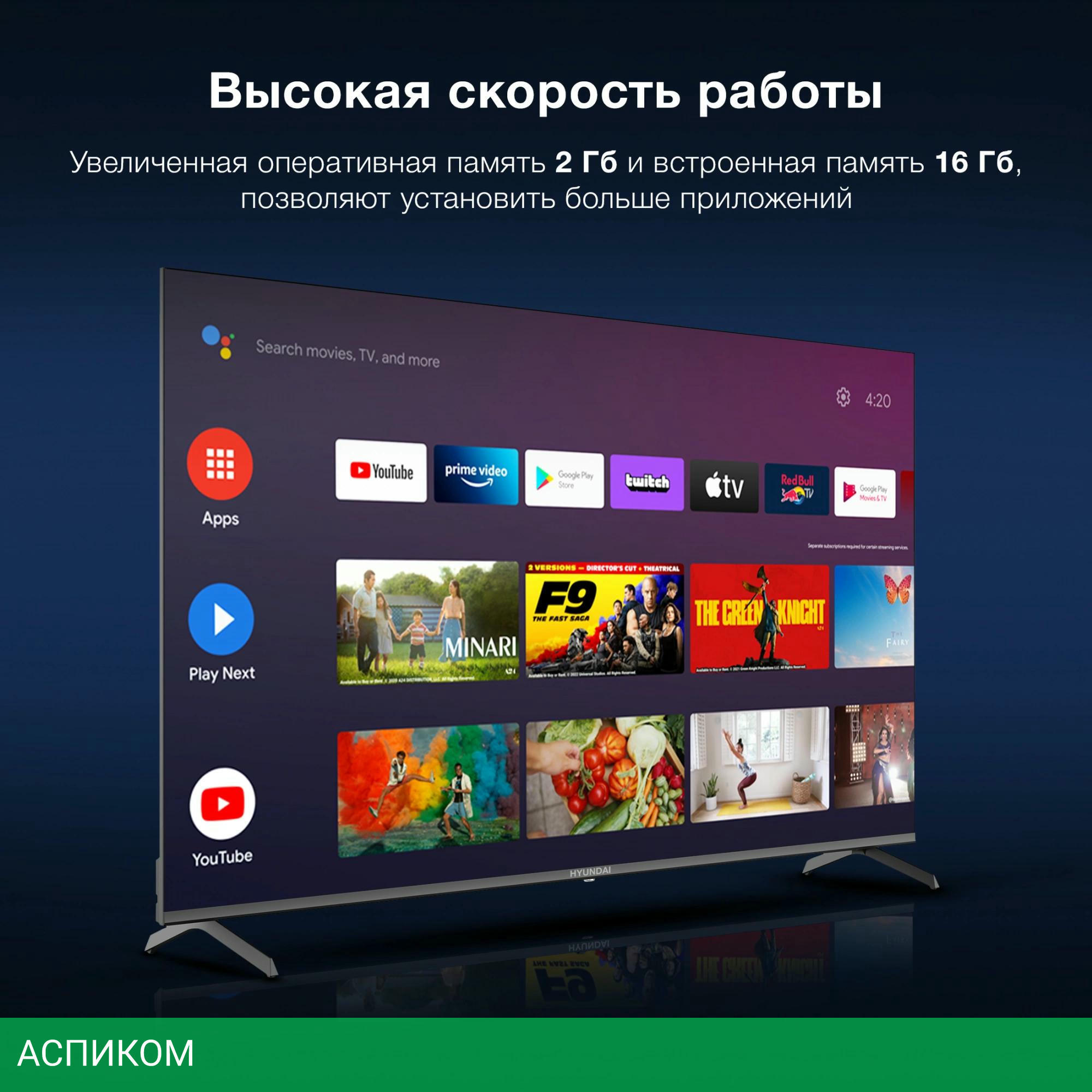 Телевизор Hyundai H-LED65BU7009 черный/черный/ЖК/VA/65″/3840x2160 (4K UHD)/60Hz/Frameless/Smart TV/Android TV/BT/Wi-Fi/DVB-С/DVB-S/DVB-S2/DVB-T/DVB-T2/USB 2.0/черный