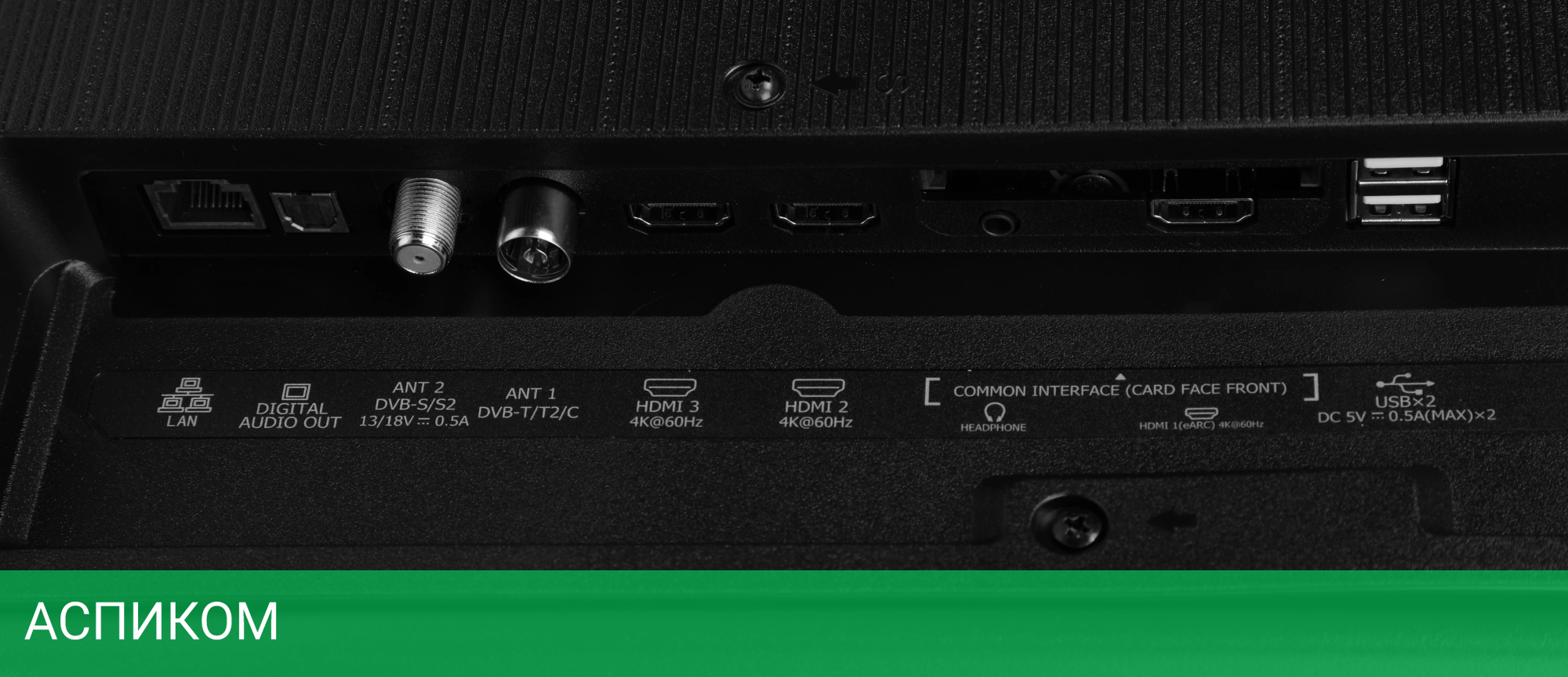 CI+/PCMCIA, HDMI, RJ-45 (Ethernet), USB Type-A, композитный (видео)