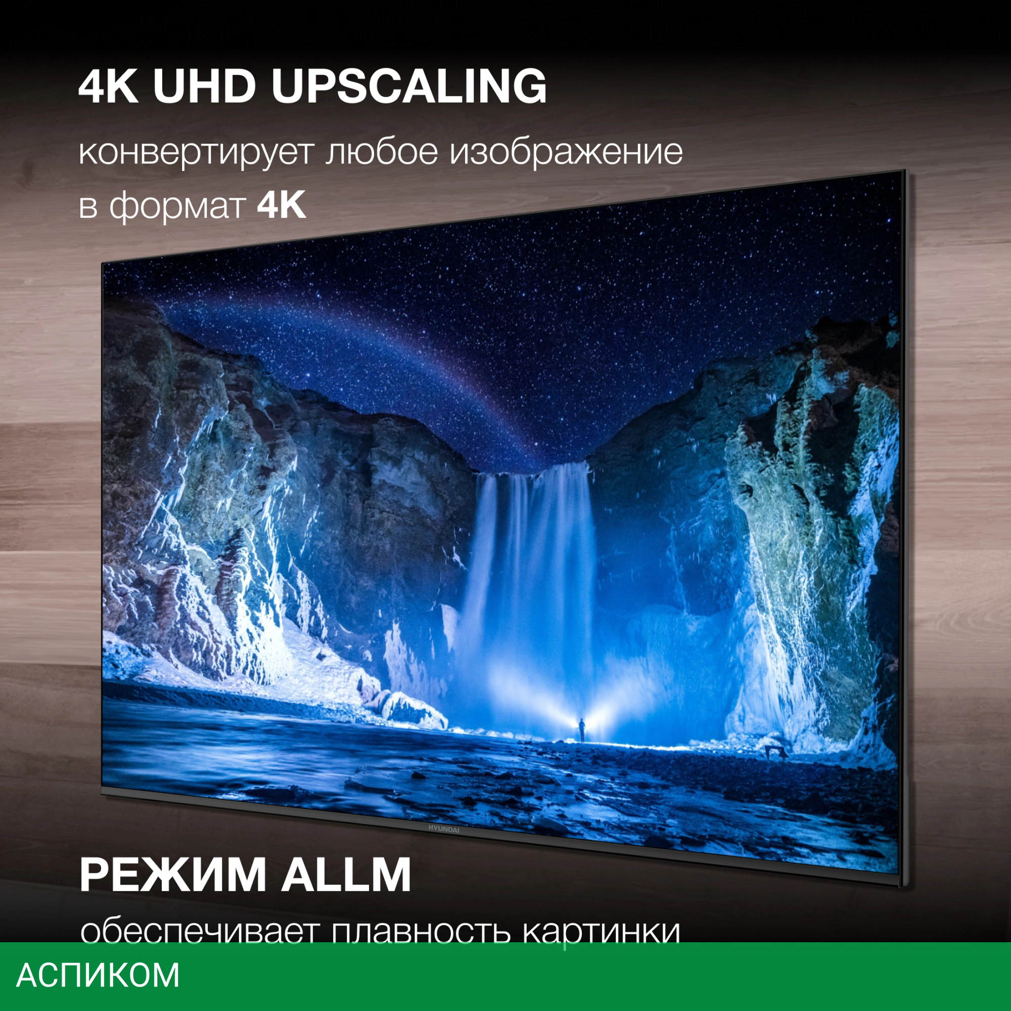 75-дюймовый телевизор HYUNDAI H-LED75BU7006 выводит изображение высокого качества и проигрывает контент с онлайн-площадок.