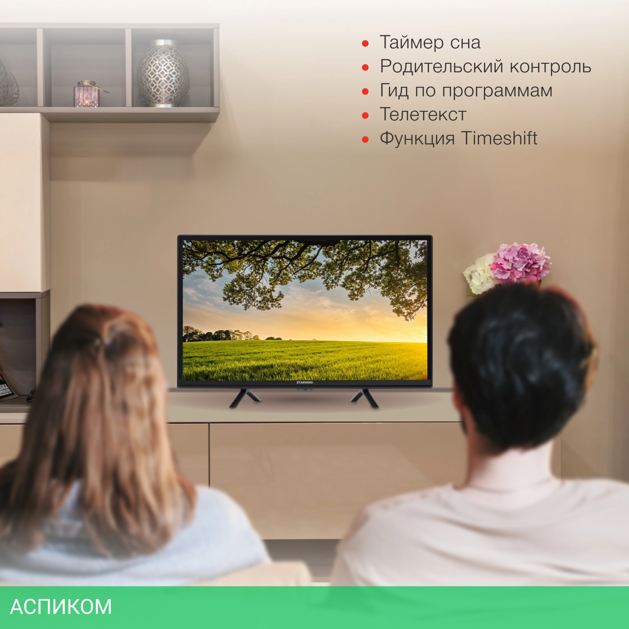 Среди дополнительных функций Starwind SW-LED24BG202 есть телетекст и телегид для того, чтобы легко ориентироваться в сетке передач, таймер сна для отключения питания по расписанию, TimeShift для перемотки эфира, родительский контроль для фильтрации контента.