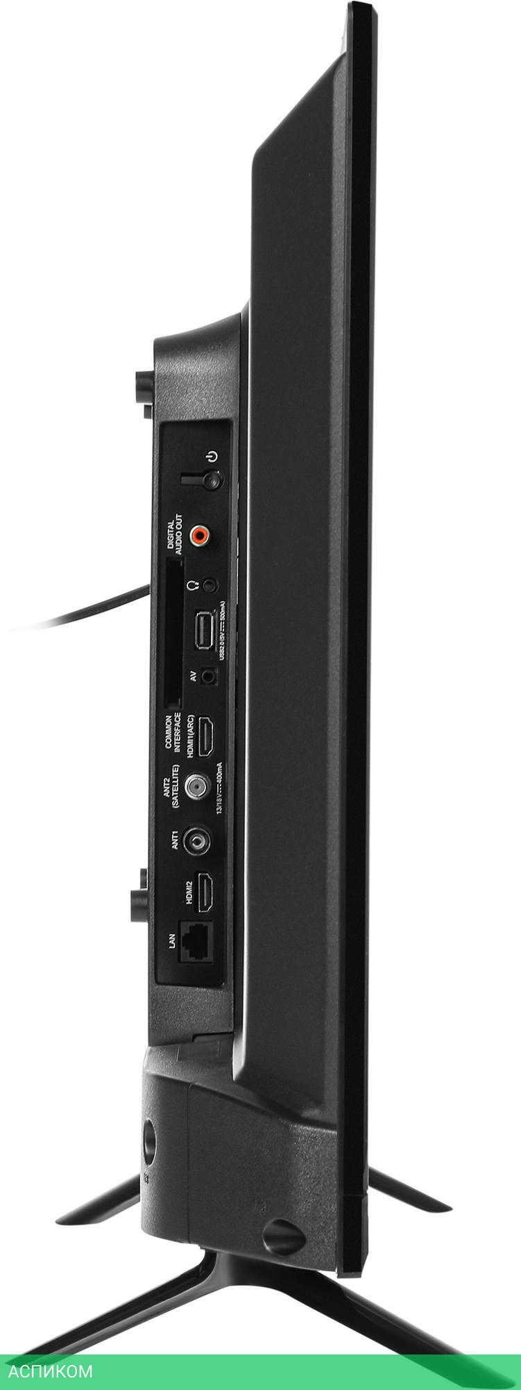 Телевизор принимает большое количество каналов, потому что оснащён пятью тюнерами для покрытия широкого диапазона частот: спутникового, кабельного, цифрового. Помимо этого, устройство поддерживает загрузку и воспроизведение с онлайн-стримингов, а благодаря оболочке Яндекс ТВ на базе операционной системы Android ещё и управляется голосом с идущего в комплекте Bluetooth-пульта дистанционного управления. Для подключения к интернету в данной модели предусмотрен как модуль WI-FI, так и слот для проводного подключения Ethernet.