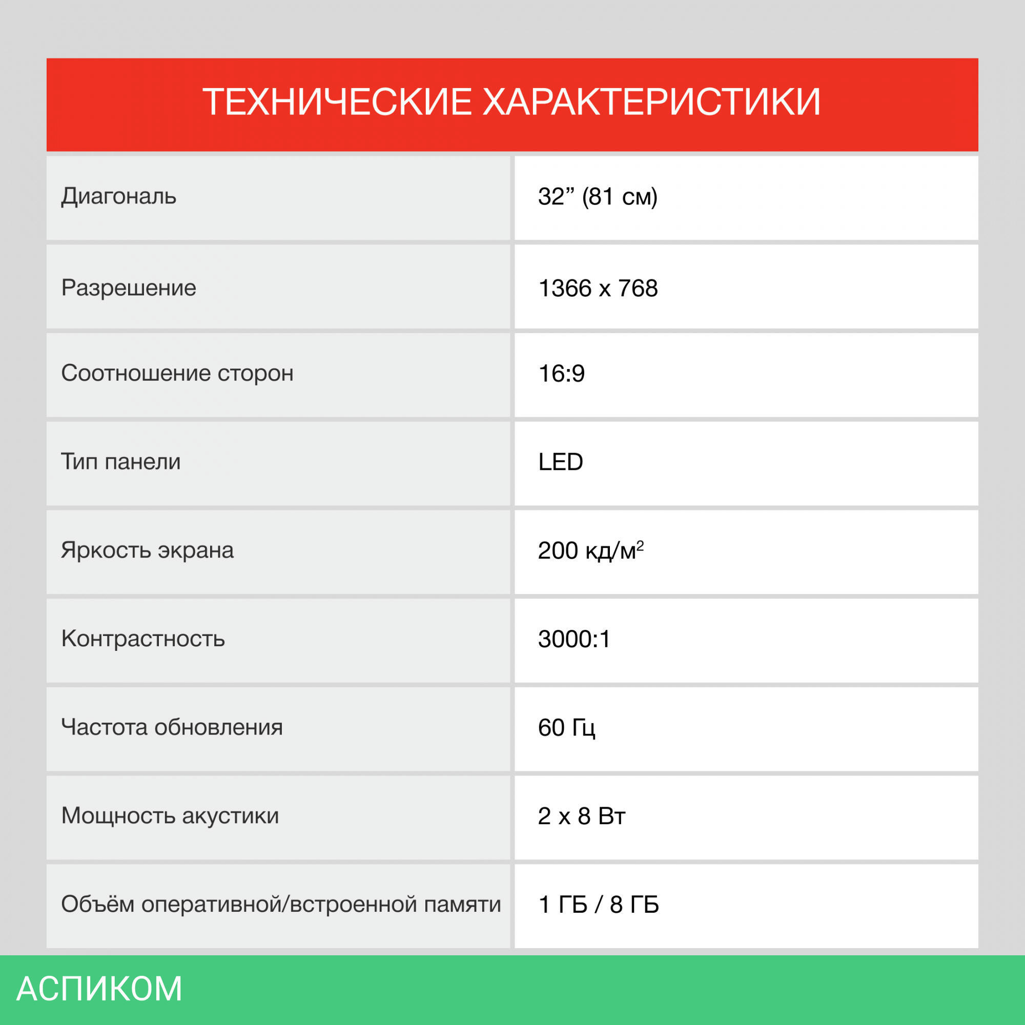 Просмотр данной модели создаёт эффект погружения, которому способствует безрамочный дизайн и широкие углы обзора экрана – до 178 градусов по вертикали и горизонтали. Высокотехнологичная матрица прибора обеспечивает частоту обновления дисплея 60 Гц, что делает устройство прекрасным решением не только для просмотра динамичных телеперадач и фильмов в формате HD, но и для видеоигр. Разрешение экрана составляет 1366х768 дюймов, в совокупности с оптимально подобранными значениями яркости и контрастности, оно не утомляет глаза и делает изображение сбалансированным и красочным.
