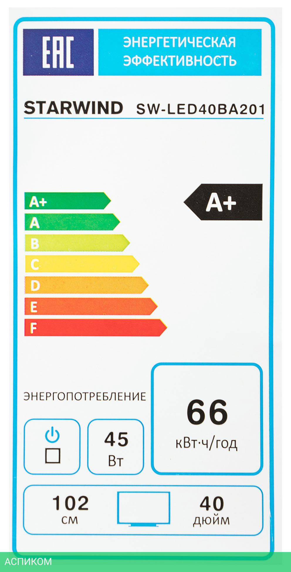 Одно из главных преимуществ дисплея данной модели – жидкокристаллическая матрица с разрешением 1920x1080 в качестве Full HD. Диагональ экрана - 101 см. Высокая детализация изображения и качественная цветопередача в сочетании с частотой обновления 60 Гц, оптимальными характеристиками яркости и контрастности позволяют с комфортом смотреть не только ТВ-передачи, но и динамичные спортивные матчи. Даже самые актуальные видеоигры будут выглядеть насыщенно и детализировано на экране SW-LED40BA201.