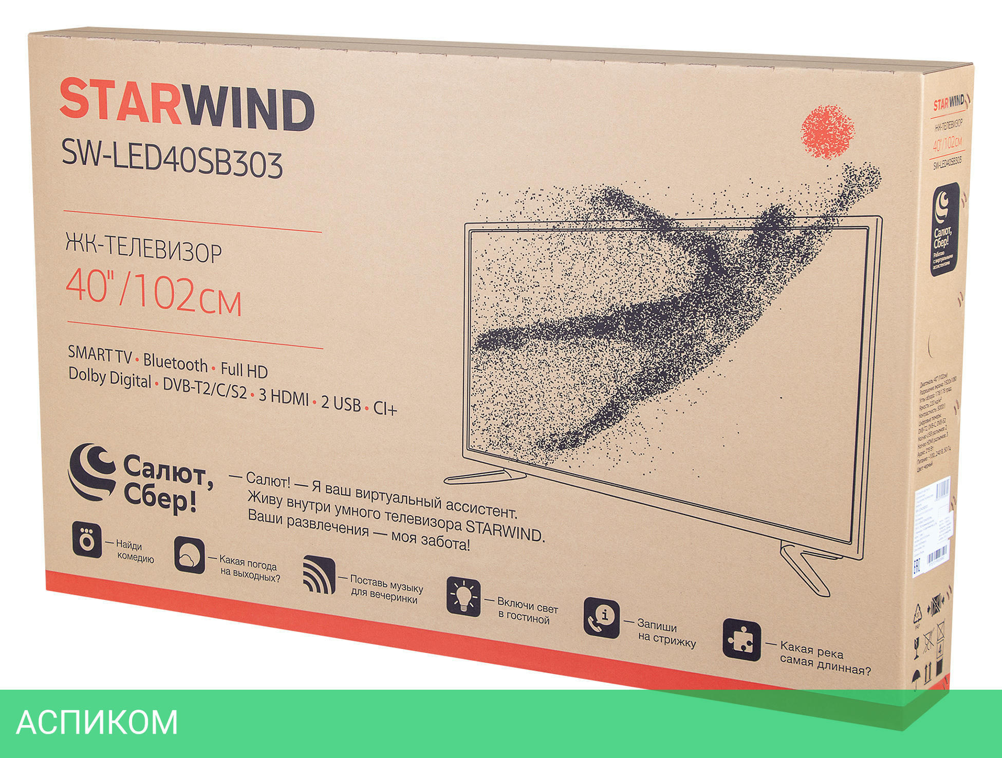 Телевизор Starwind SW-LED40SB303 изготовлен добротно, только из качественных материалов. Корпус приятен на ощупь, многочисленные разъемы закреплены надежно. Smart TV функционирует на базе операционной системы «Салют», разработанной подразделением «Сбера». Платформа телевизора позволяет превратить устройство в многофункциональный комплекс. С его помощью удастся заказать продукты питания, записаться на прием к врачу, отыскать увиденные вещи, поиграть с использованием возможностей облачных сервисов, поговорить с голосовыми помощниками, управлять умным домом. Картинка отчетлива благодаря полноценной поддержке Full HD.