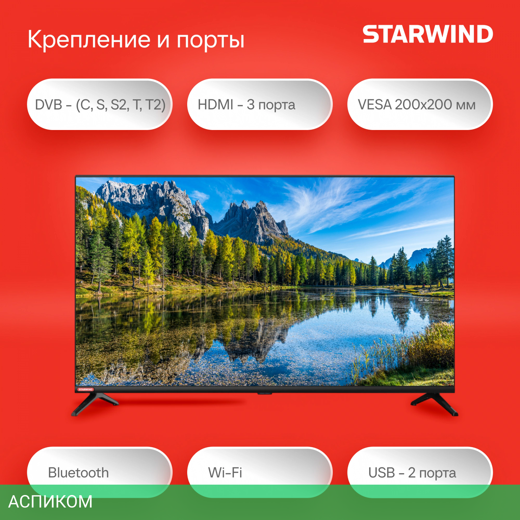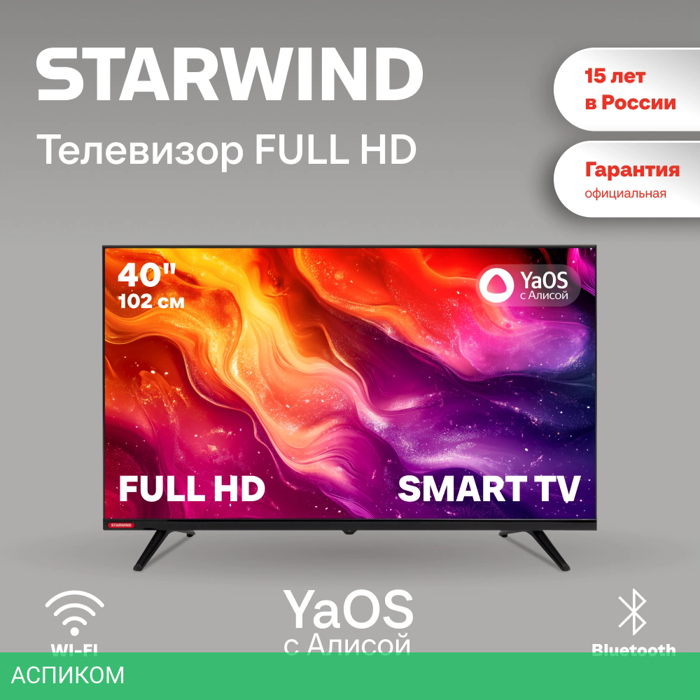 Starwind 40" SW-LED40SG300 – это полноценный домашний медиаплеер в формате телевизора c минимальными рамками экрана и в лаконичном дизайне.
