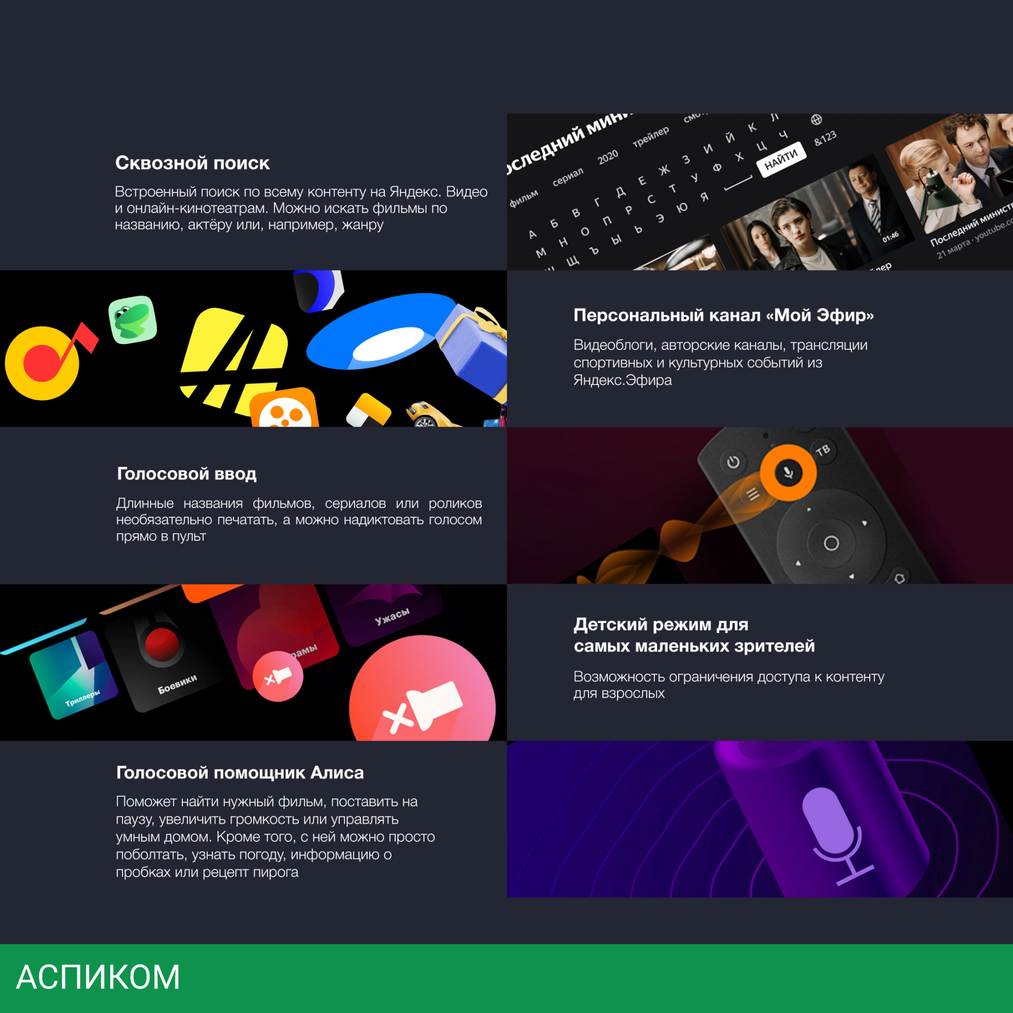 Одной из главных особенностей данной модели является современная операционная система Android с русифицированной оболочкой от Яндекс и голосовым управлением. Благодаря этому устройство не только принимает ТВ-каналы, но также способно воспроизводить медиаконтент с популярных онлайн-стримингов. Приложения для доступа к ним доступны к скачиванию в магазине, предустановленном на данной модели. Управляется Starwind 40" SW-LED40SG300 с пульта дистанционного управления, поддерживающего голосовой ввод, он соединяется с прибором по протоколу беспроводного соединения Bluetooth.