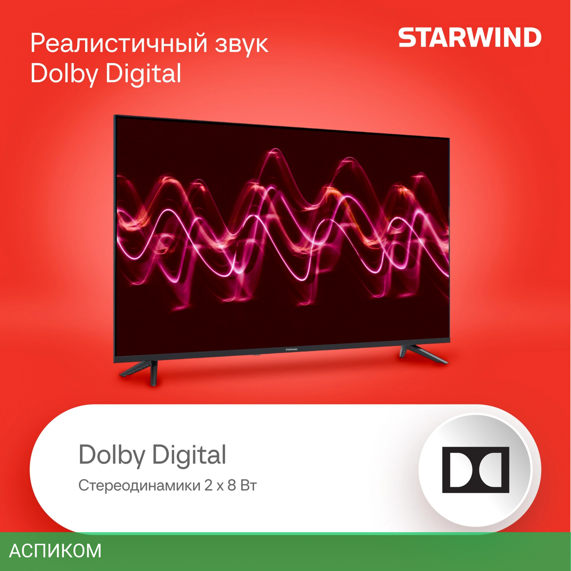 Телевизионные каналы Starwind SW-LED43UG403 принимает с помощью связки из пяти различных тюнеров: пары спутниковых, пары цифровых и одного кабельного.