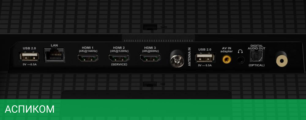 HDMI, RJ-45 (Ethernet), S/PDIF (оптический), USB Type-A