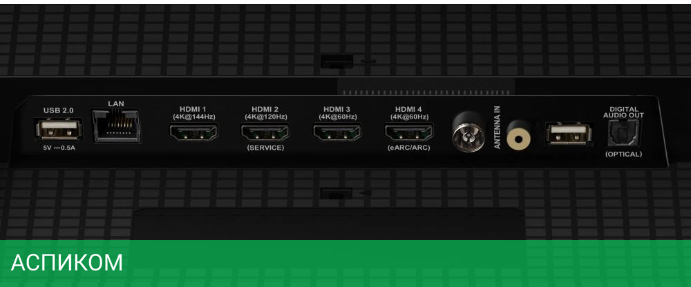 HDMI, RJ-45 (Ethernet), S/PDIF (оптический), USB Type-A