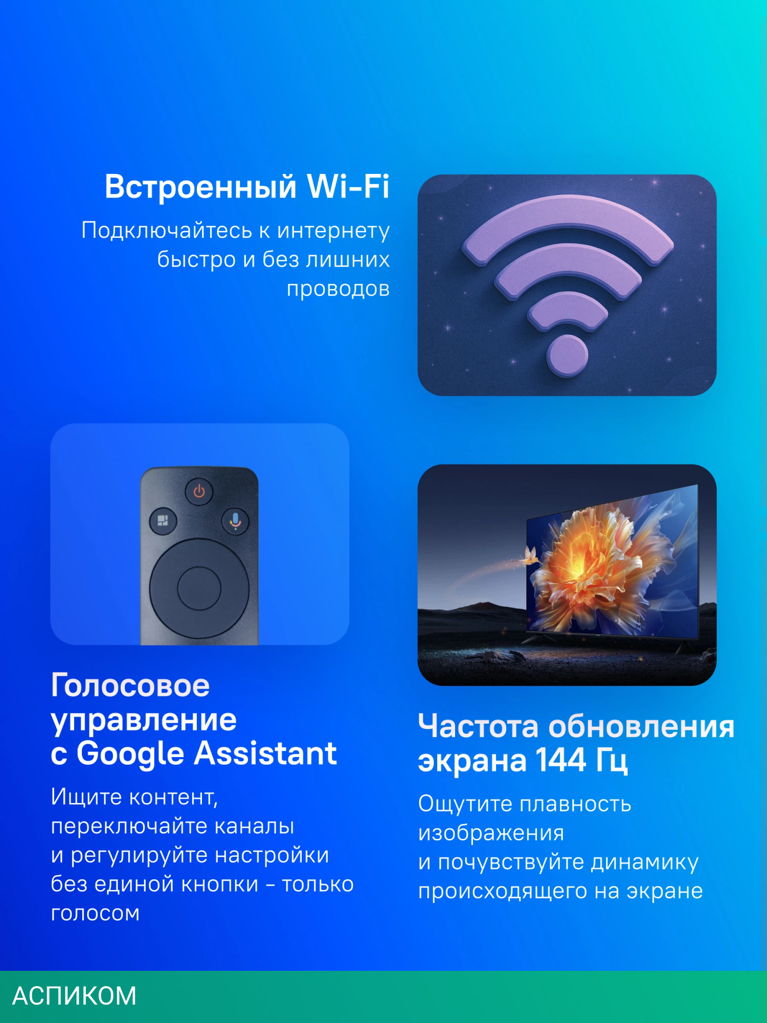 Встроенный Chromecast. Поддержка Miracast. Поддержка AirPlay. Поддржка AMD FreeSync Premium.