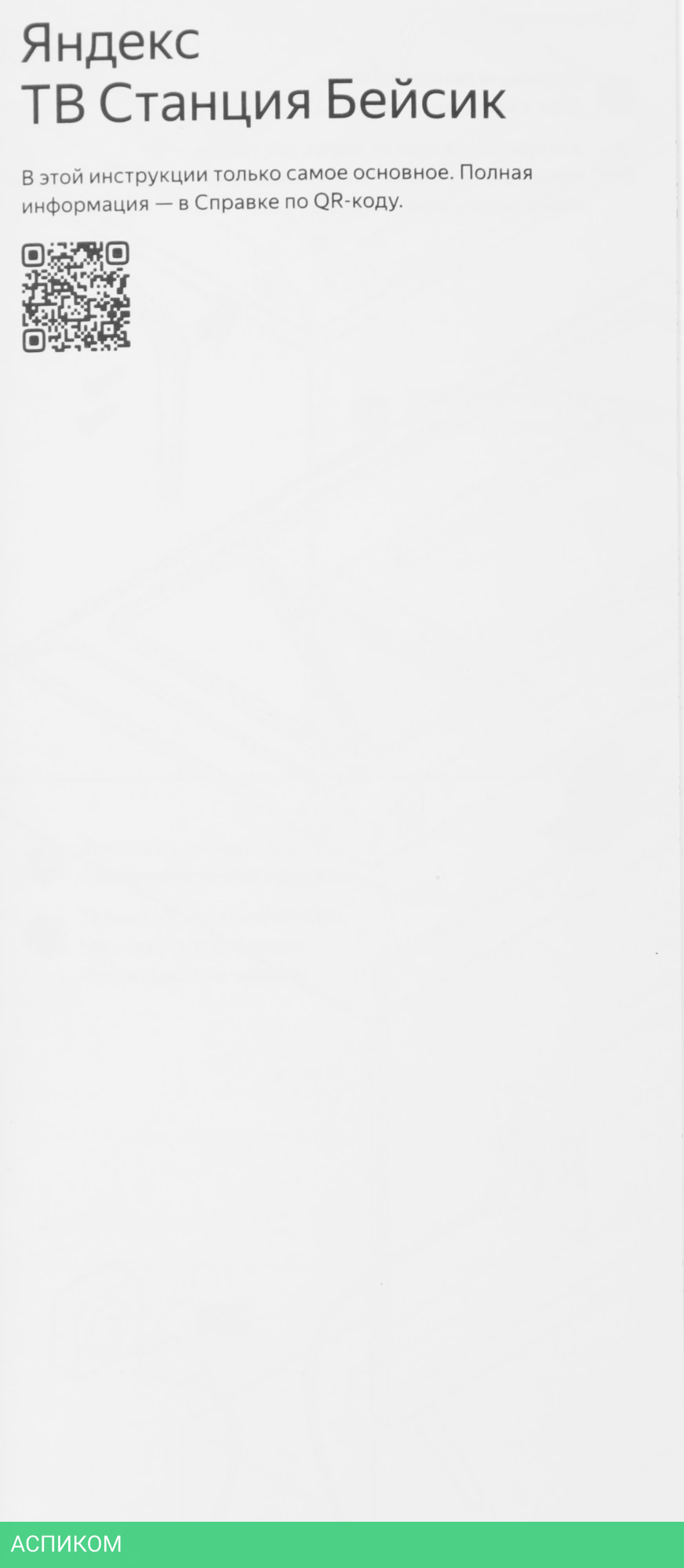 ТВ Станция Бейсик, Две ножки и комплект винтов, Пульт и 2 батарейки ААА (внутри), Кабель питания, Краткое руководство пользователя