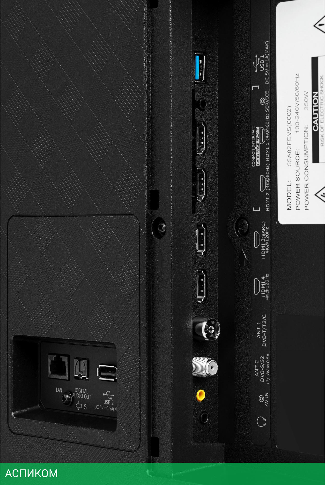 CI+/PCMCIA, HDMI, RJ-45 (Ethernet), USB Type-A, композитный (видео)