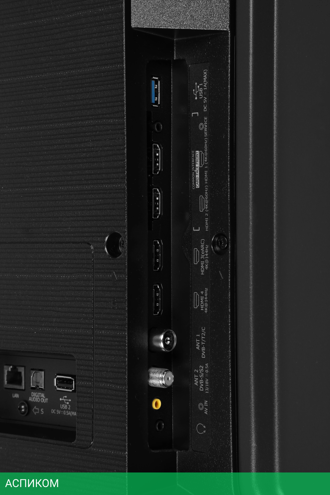 CI+/PCMCIA, HDMI, RJ-45 (Ethernet), S/PDIF (оптический), USB Type-A, для наушников, композитный (видео), стерео-аудио