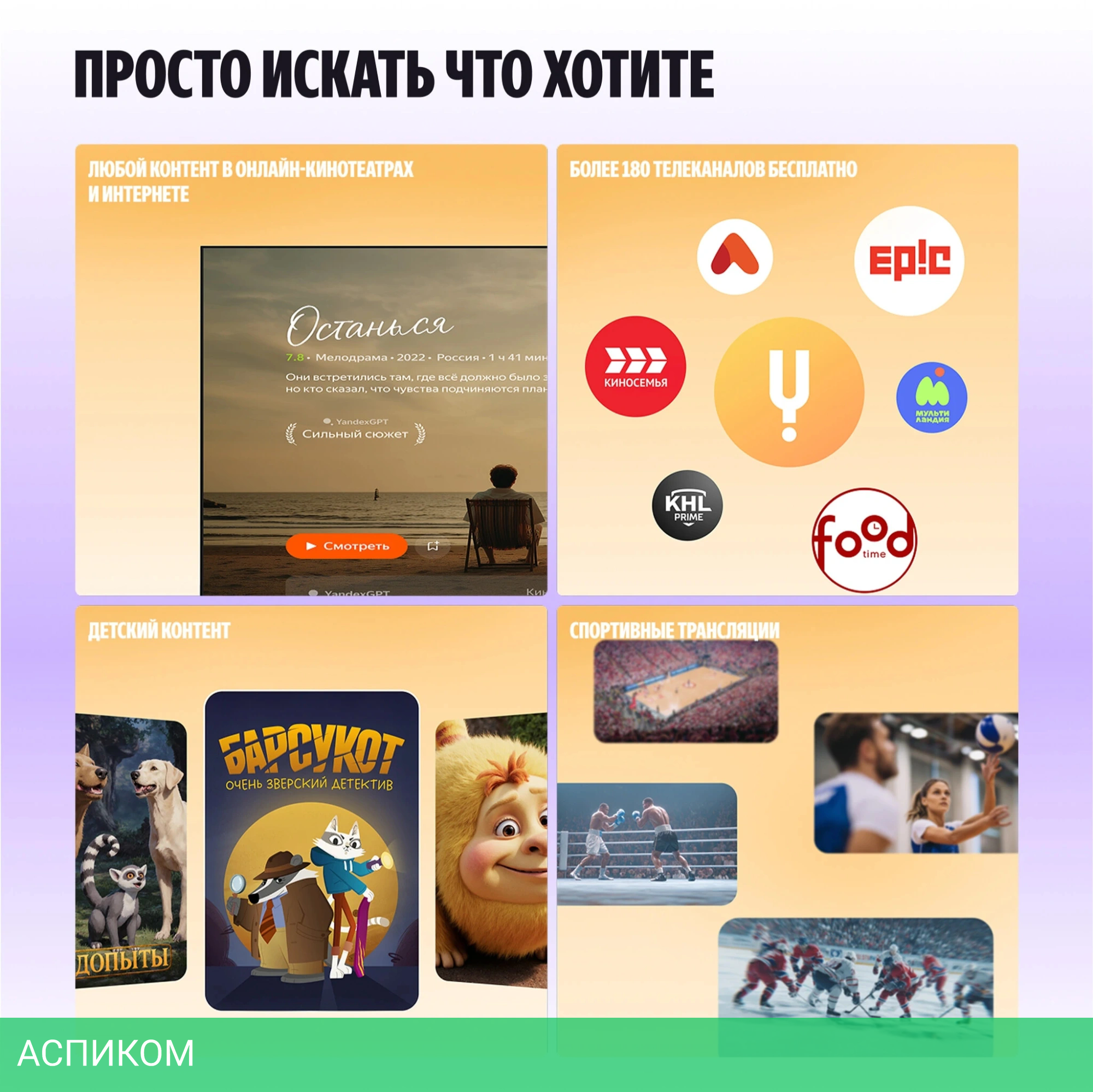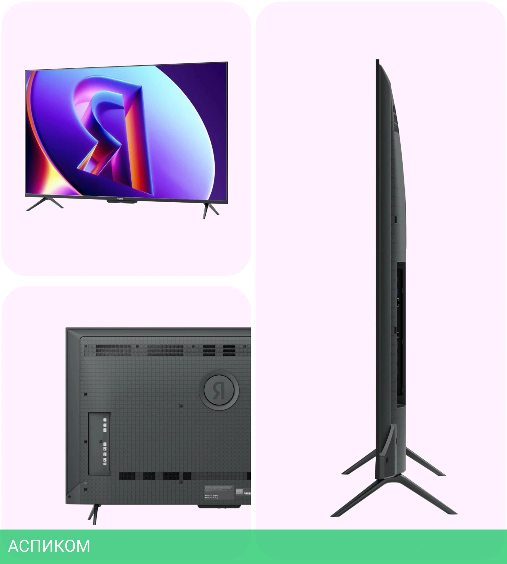 ТВ Станция Про MiniLED, Две ножки и комплект винтов, Пульт и 2 батарейки ААА (внутри), Кабель питания, Краткое руководство пользователя