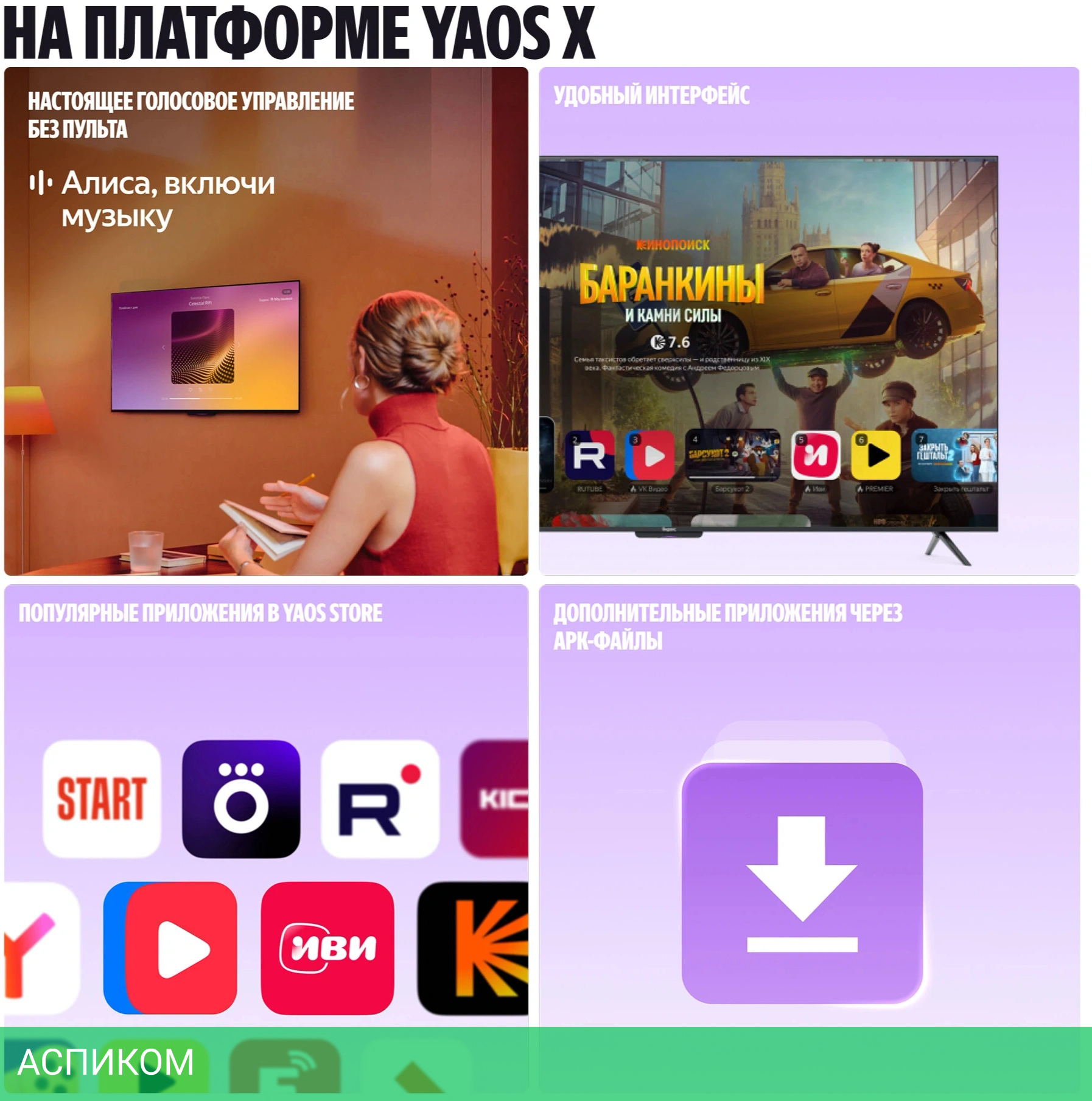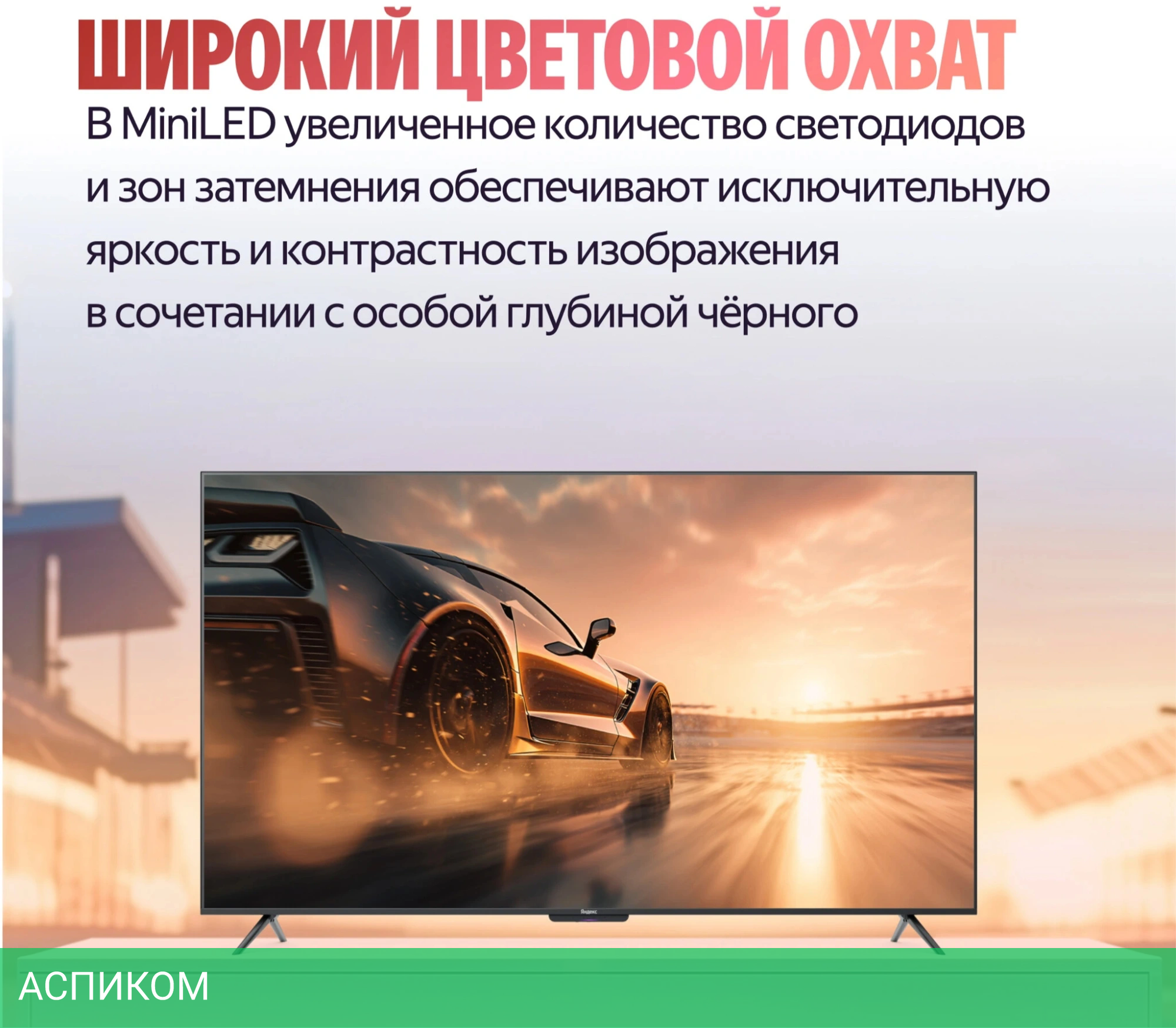 ТВ Станция Про MiniLED, Две ножки и комплект винтов, Пульт и 2 батарейки ААА (внутри), Кабель питания, Краткое руководство пользователя