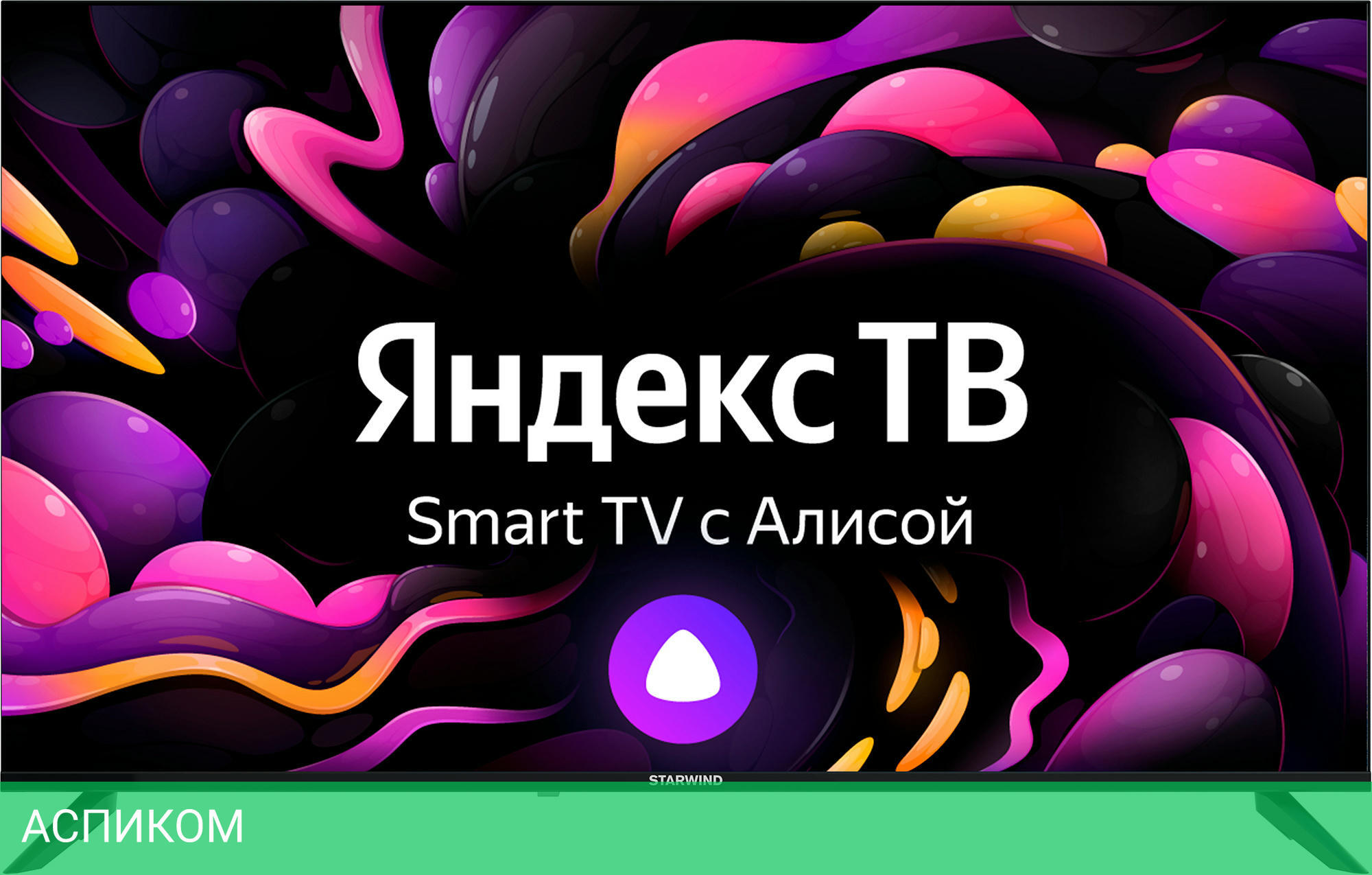 Телевизор StarWind SW-LED50UG403 черный/LED/LED/50″/3840x2160 (4K UHD)/60Hz/Frameless/Smart TV/Яндекс.ТВ/BT/Wi-Fi/DVB-C/DVB-S/DVB-S2/DVB-T/DVB-T2/USB Type-A/черный