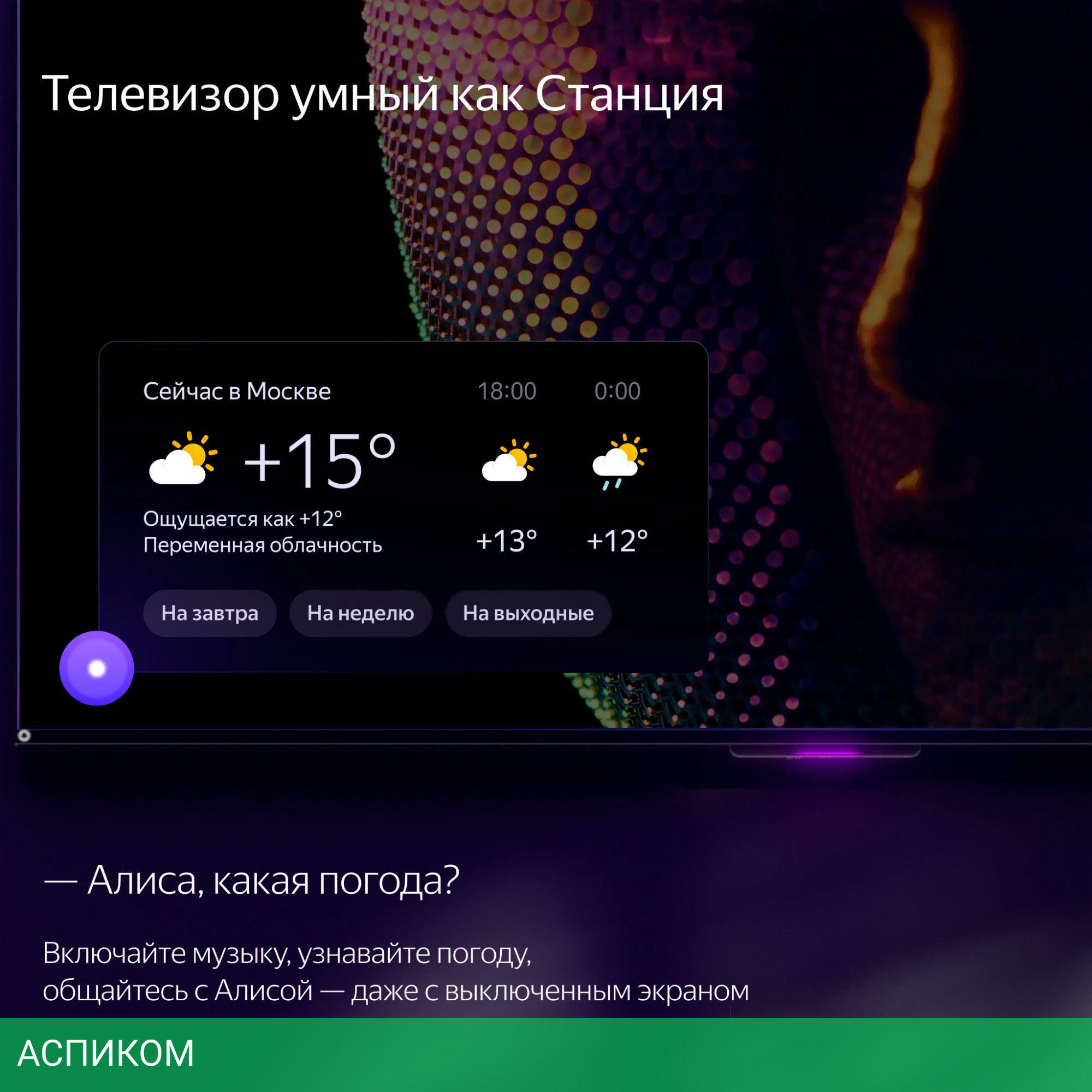 Телевизор Yandex ТВ Станция с Алисой (YNDX-00091)/ЖК/VA/43″/3840x2160 (4K UHD)/60Hz/Smart TV/Яндекс.ТВ/Wi-Fi/черный