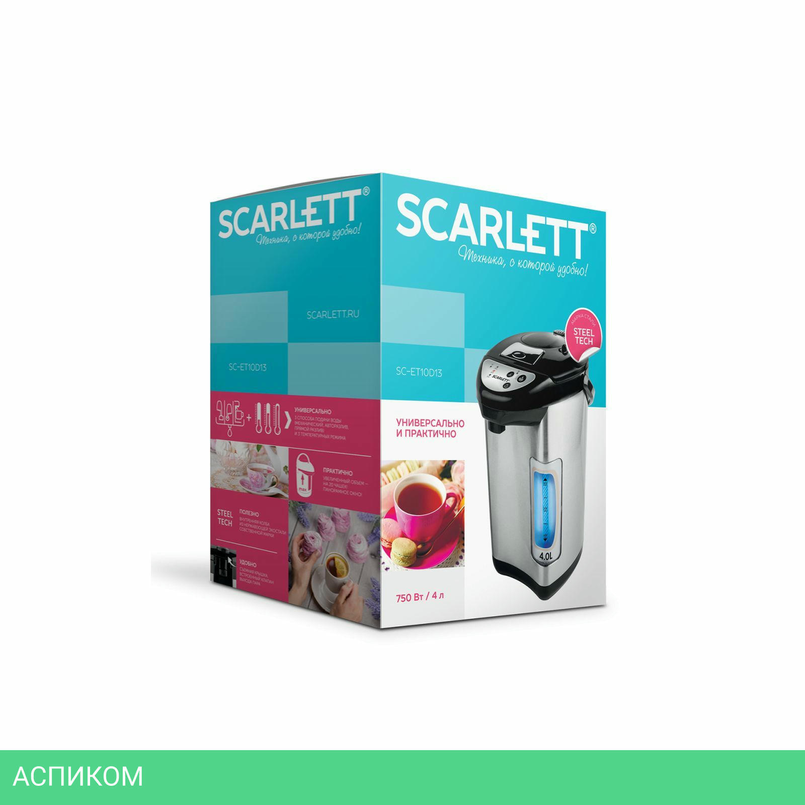 термопот / нержавеющая сталь; черный / 750.0 / 4.0 / электронное / металл