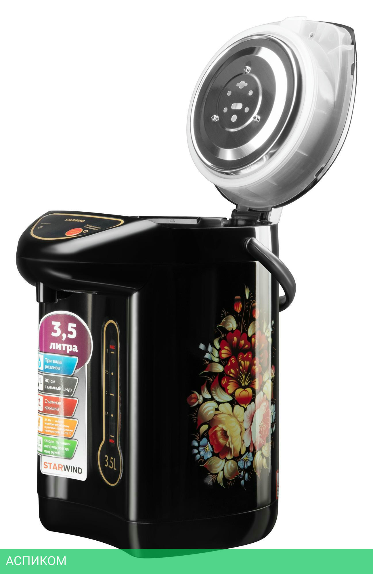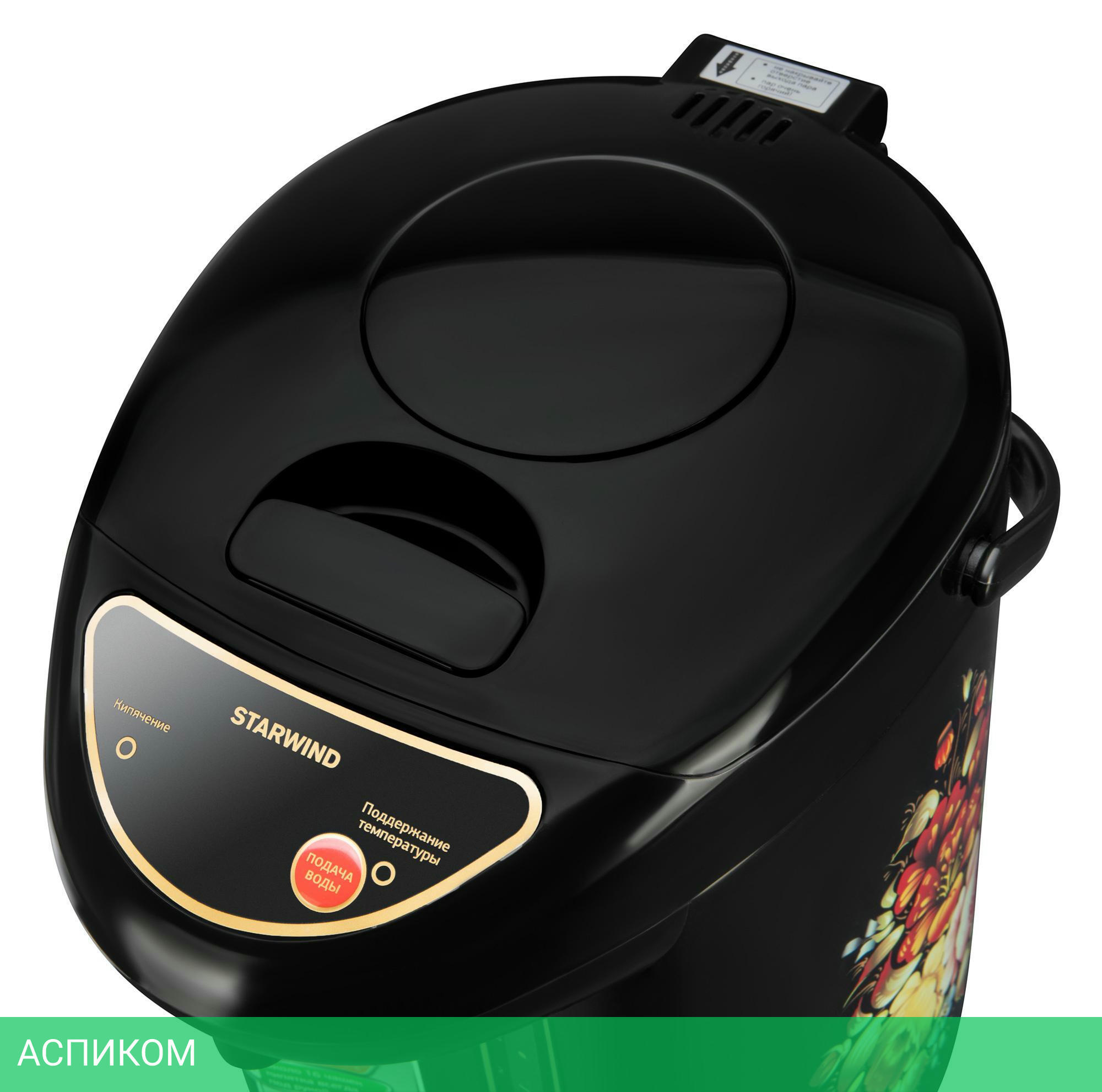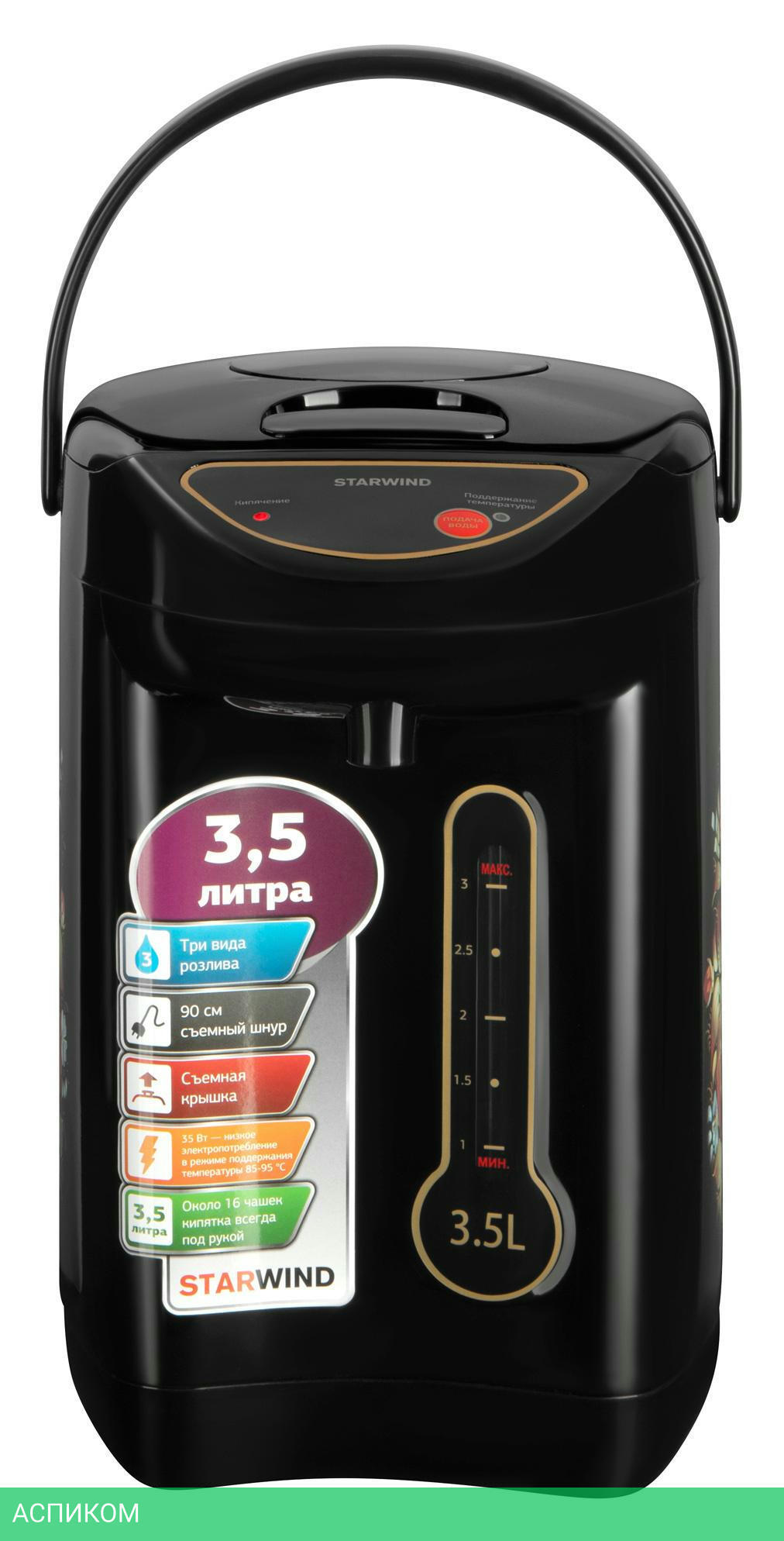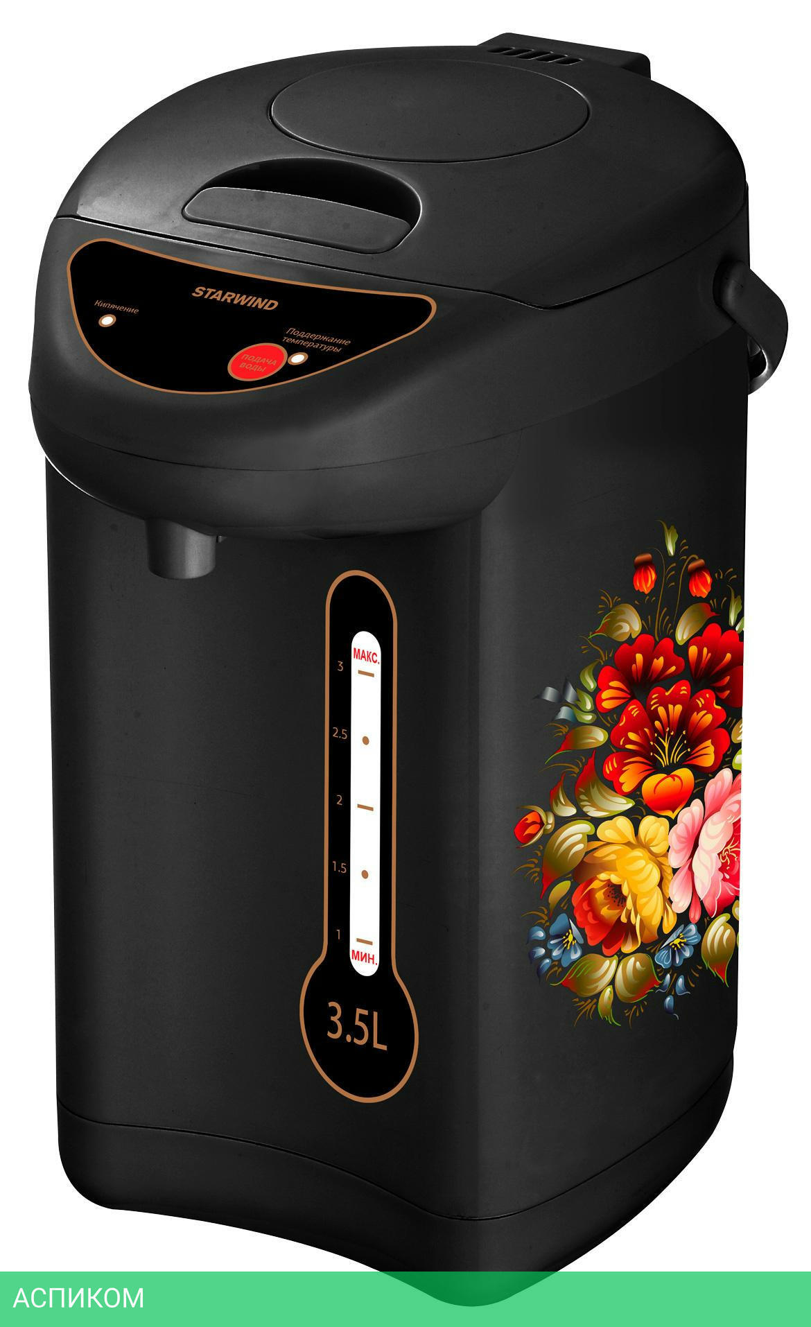 термопот / 750.0 / 3.5 / электронное / цветной принт; черный / нет / металл; пластик