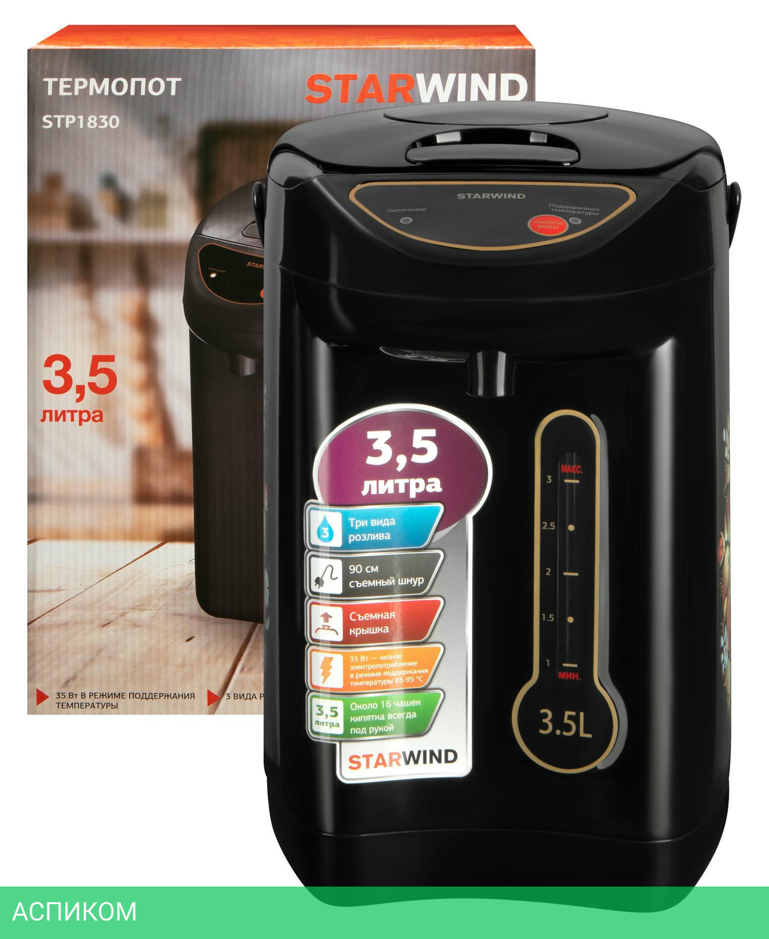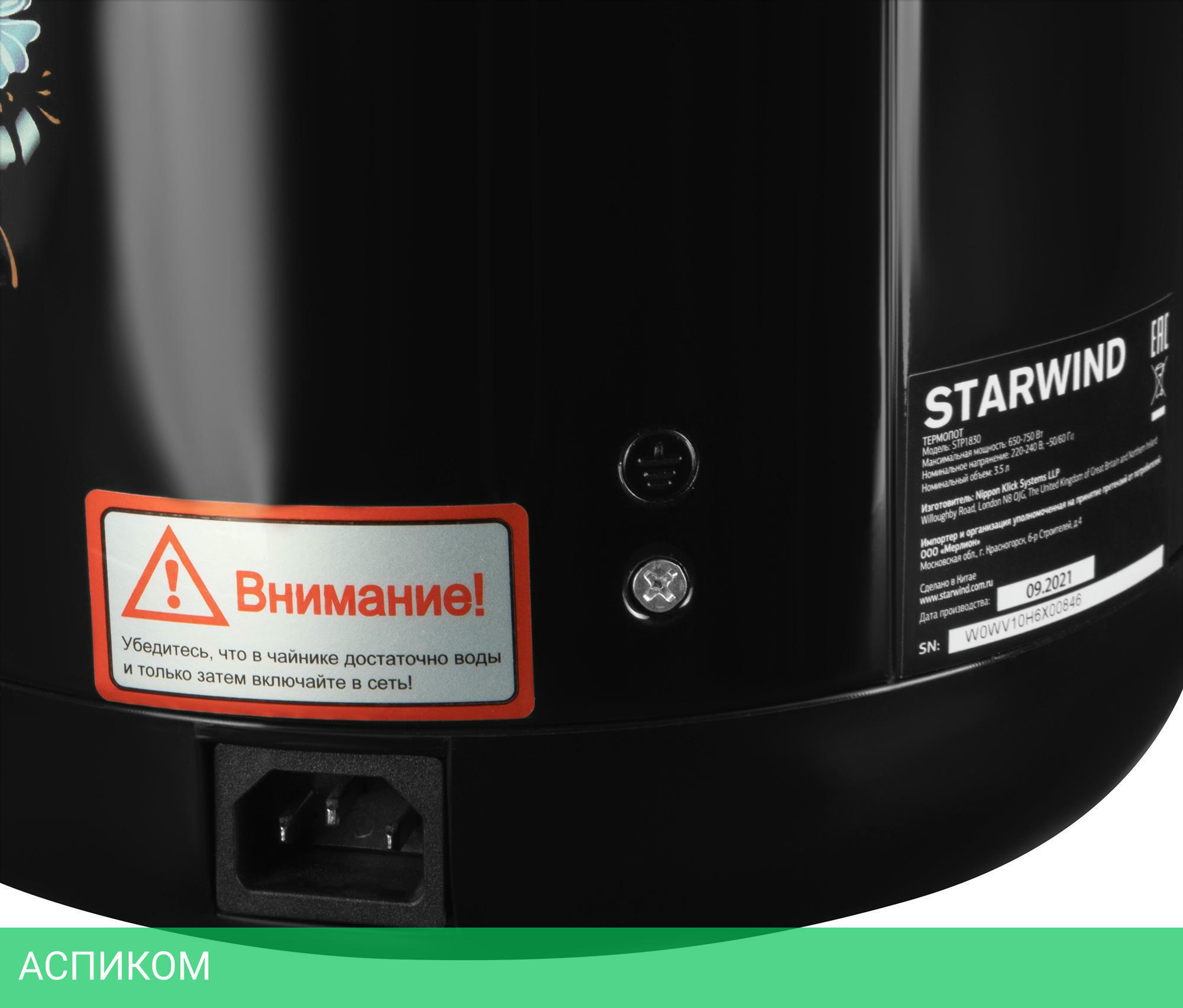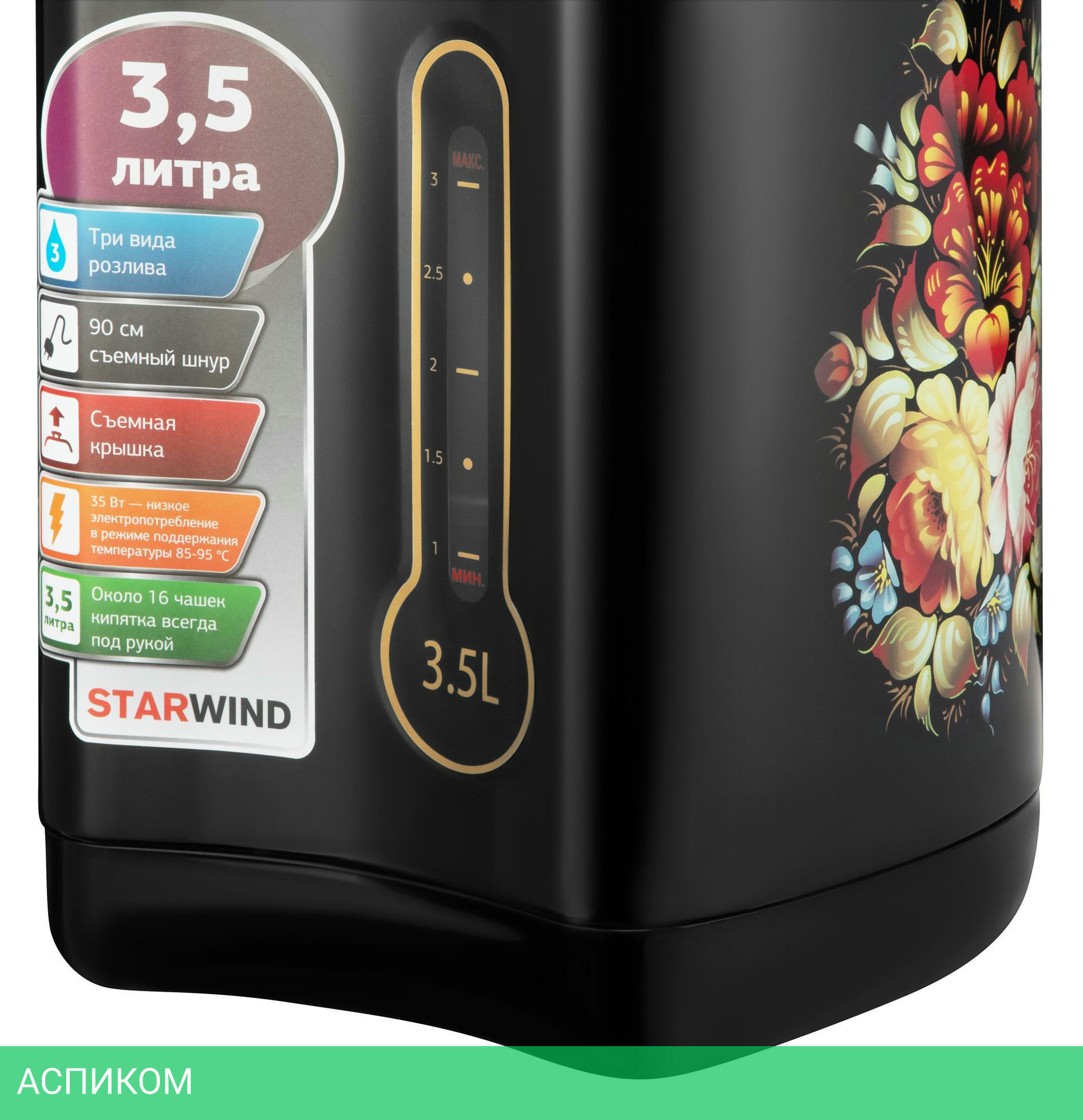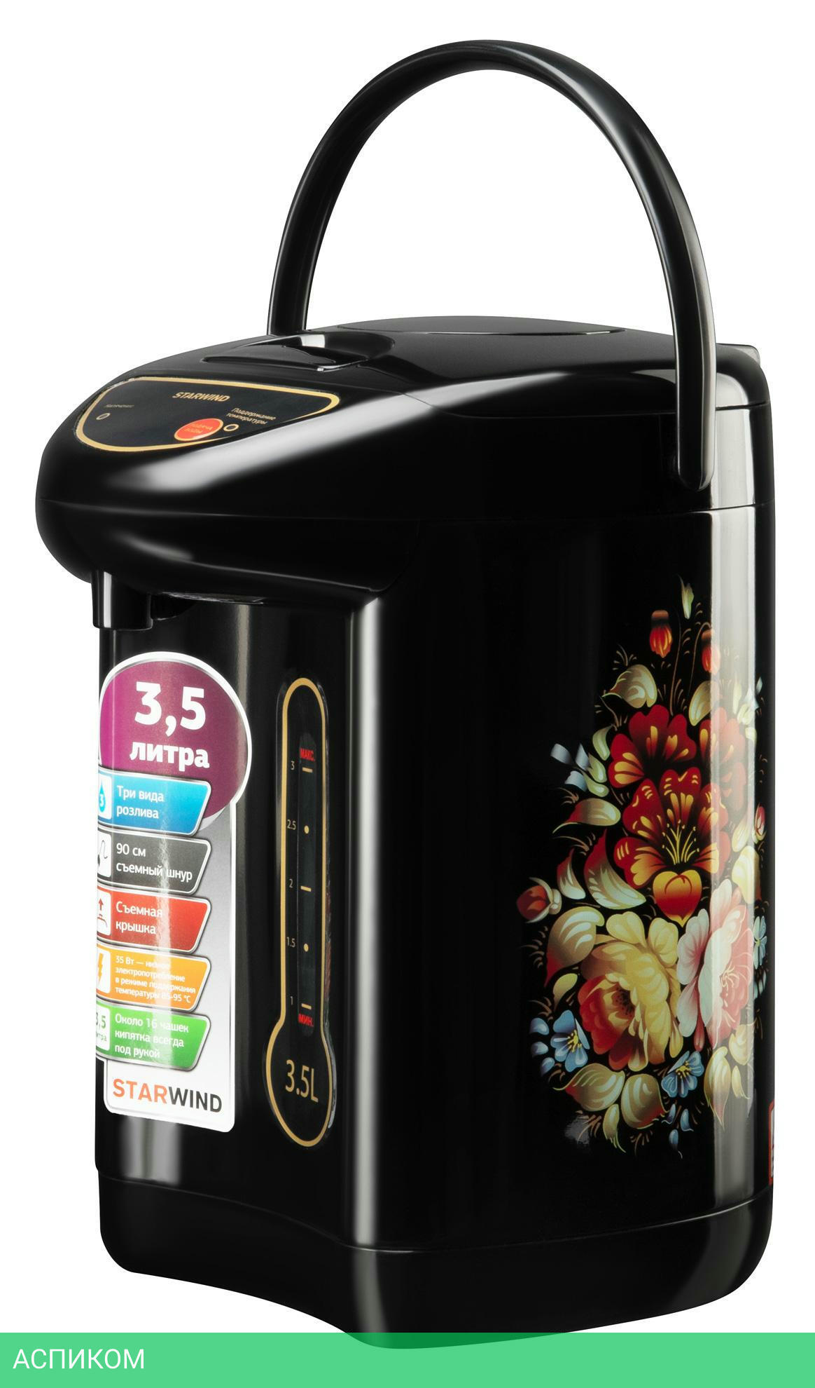 термопот / 750.0 / 3.5 / электронное / цветной принт; черный / нет / металл; пластик