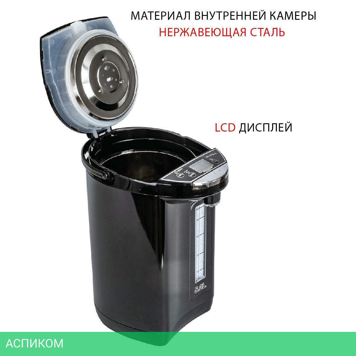 термопот / черный / 800.0 / 4.0 / электронное / нет / металл; пластик