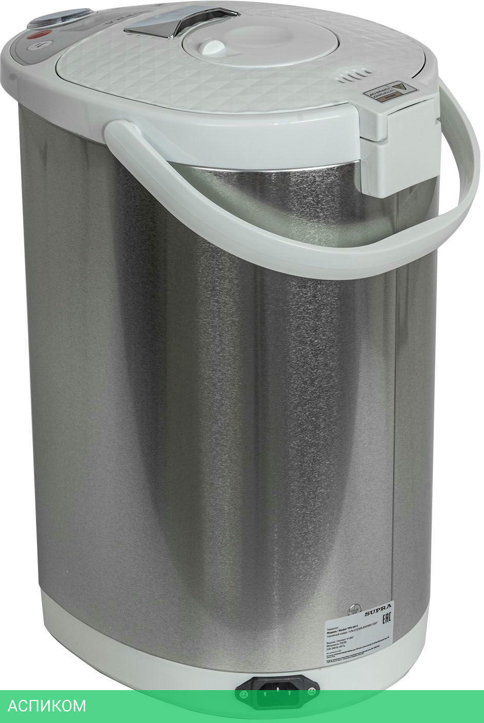 термопот / 750.0 / 5.5 / механическое / серебристый / нет / металл; пластик
