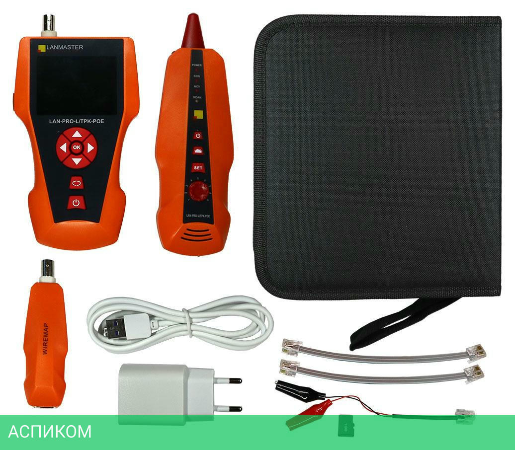 Прибор, индуктивный щуп, удаленный идентификатор, USB micro шнур, зарядное устройство, комплект адаптеров