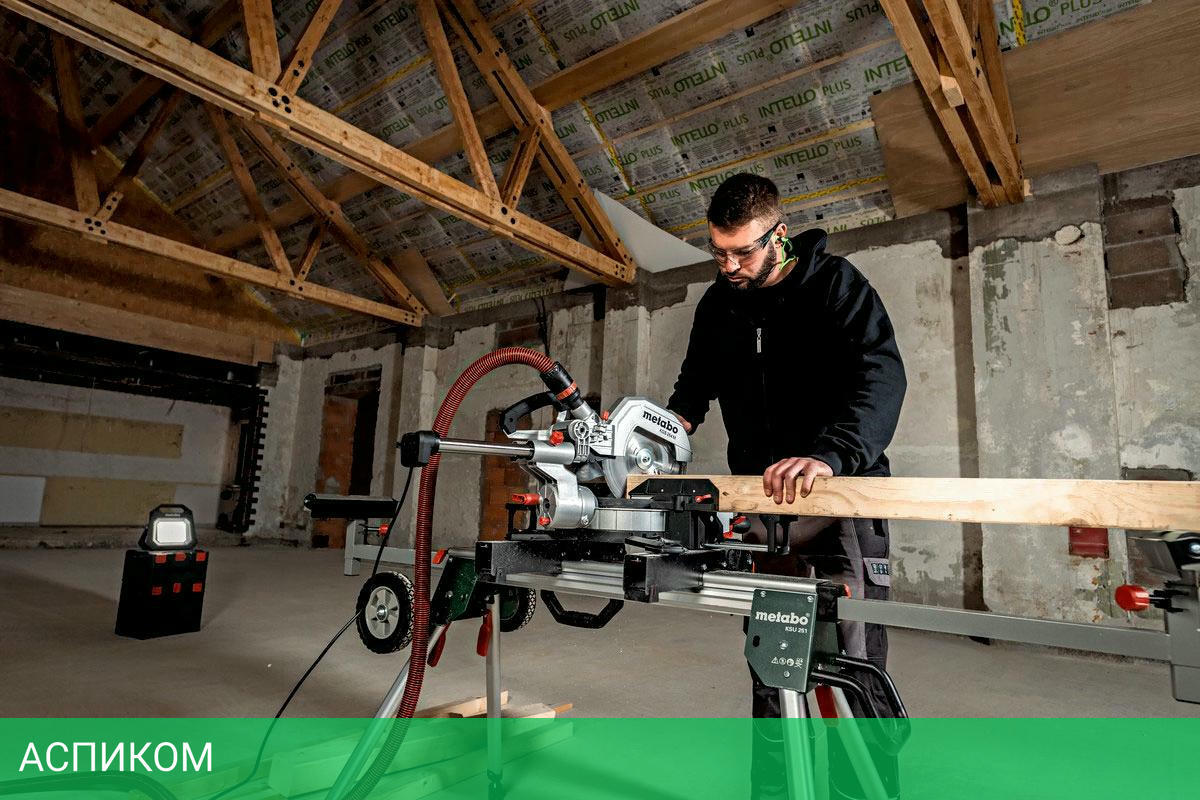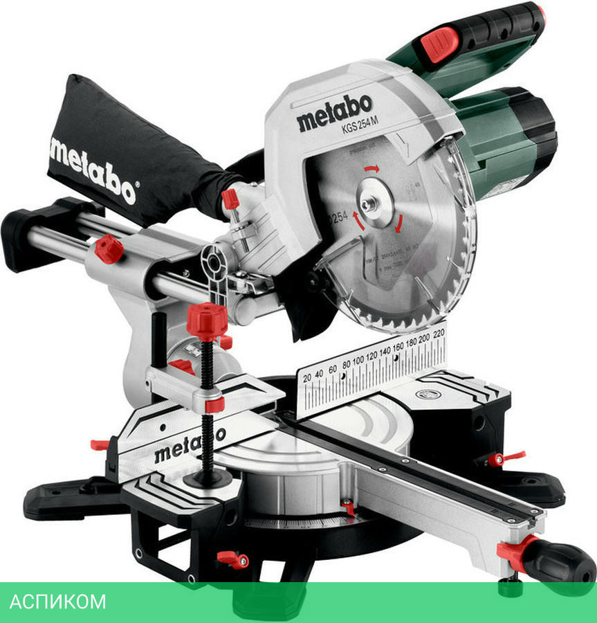ключ, пильный диск (254x30 Z48), зажим, пылесборник, расширитель стола (2 шт.), торцовочный упор, намотка кабеля