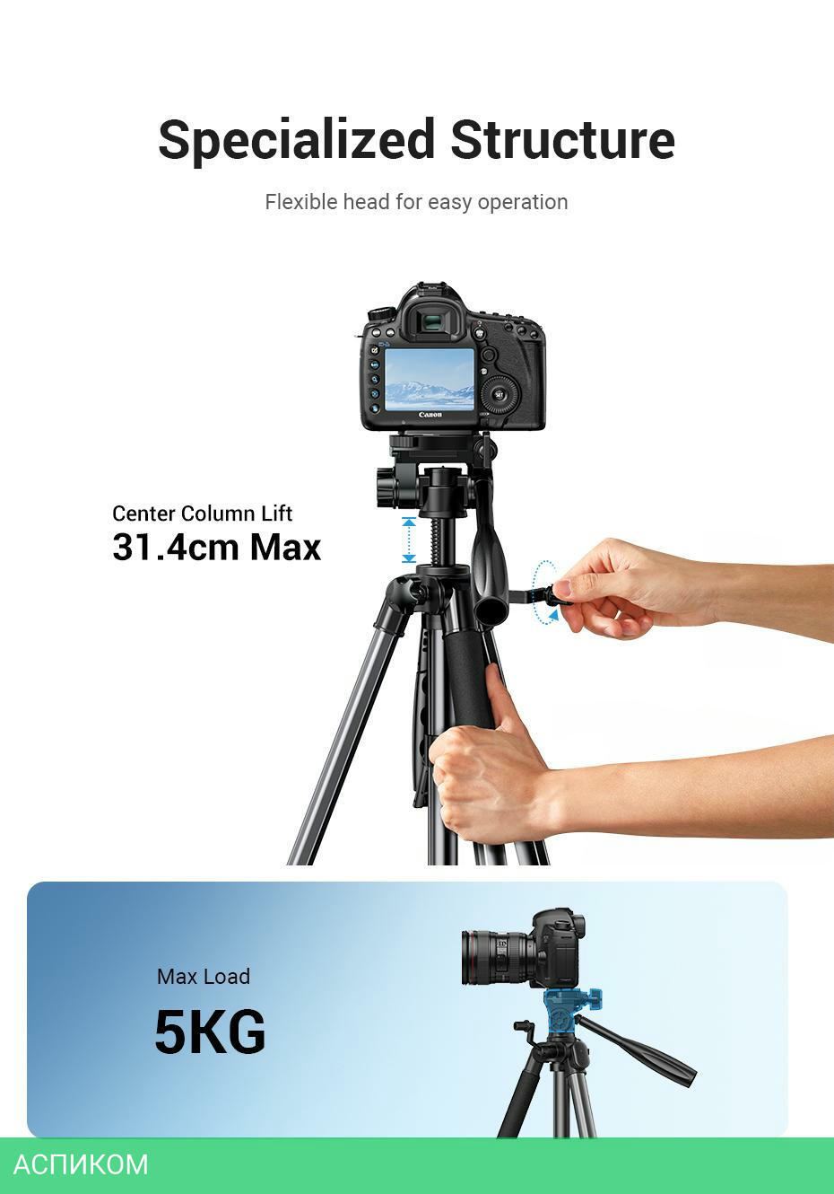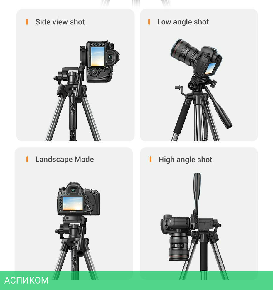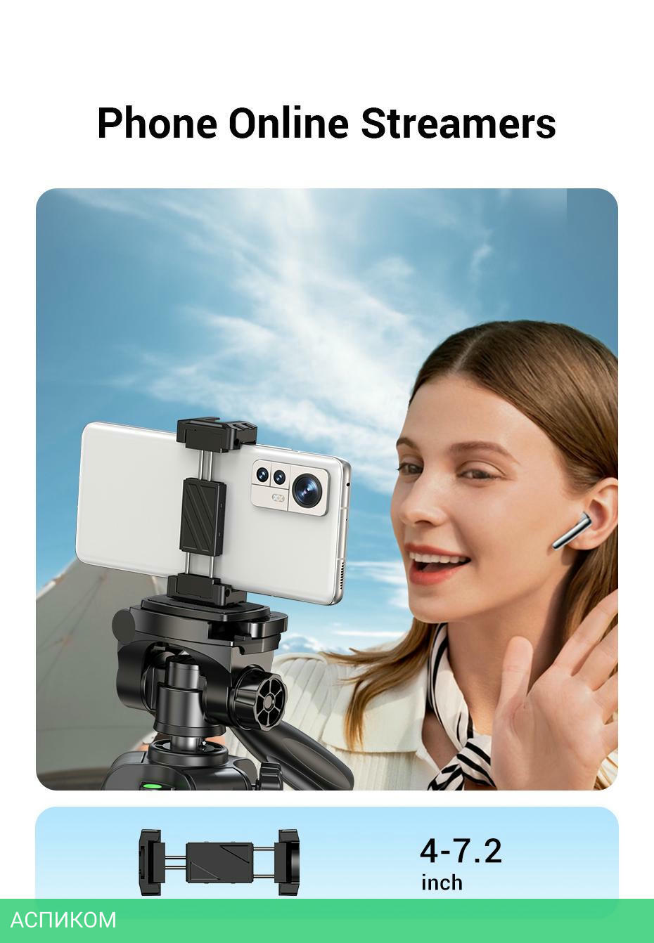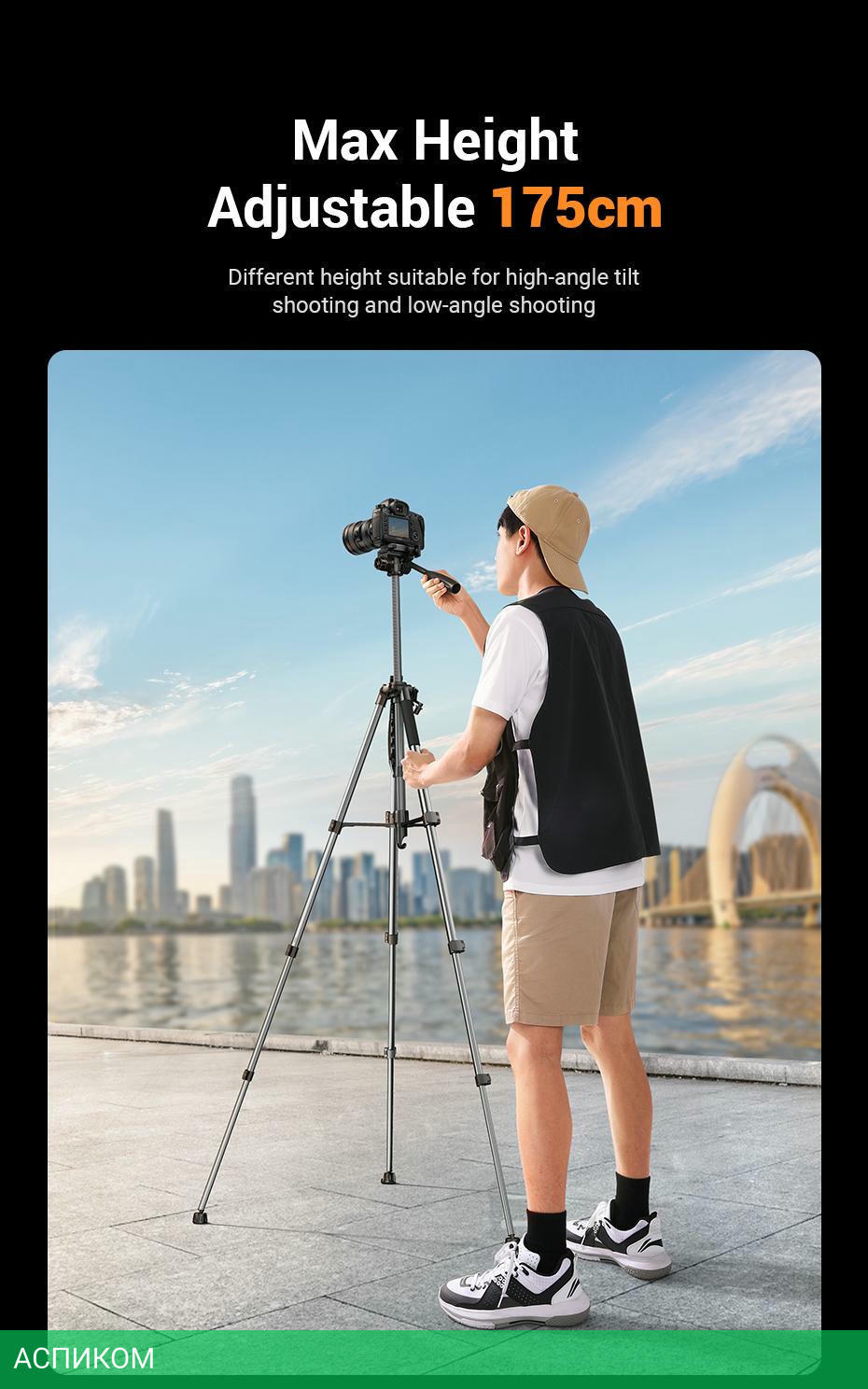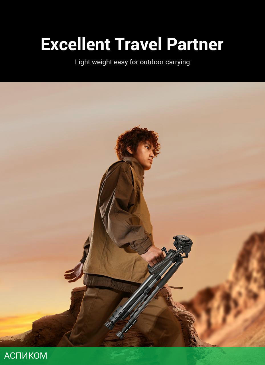 трипод / для фотокамер; для видеокамер; для смартфонов / напольный / 1/4" / да / алюминиевый сплав; пластик / черный