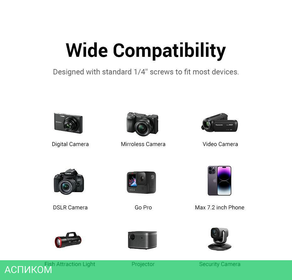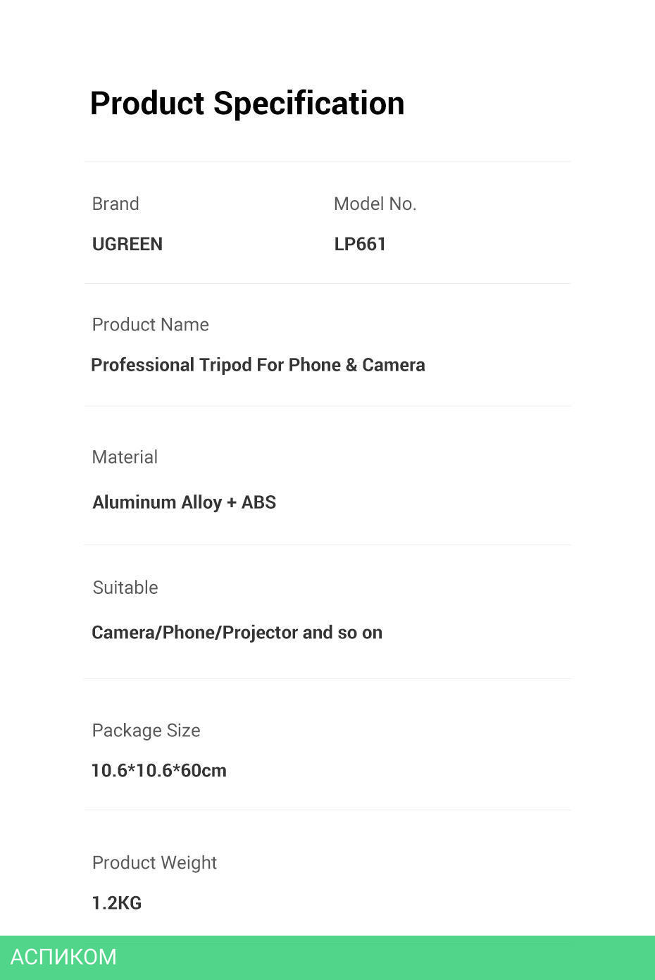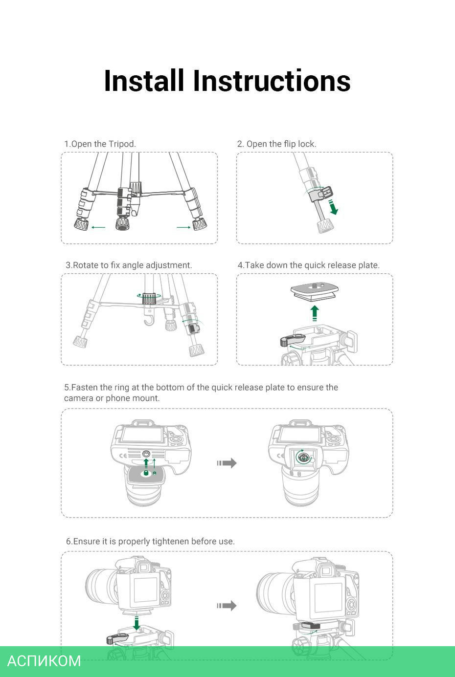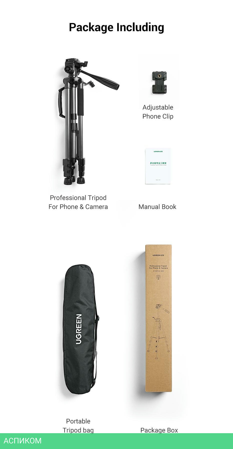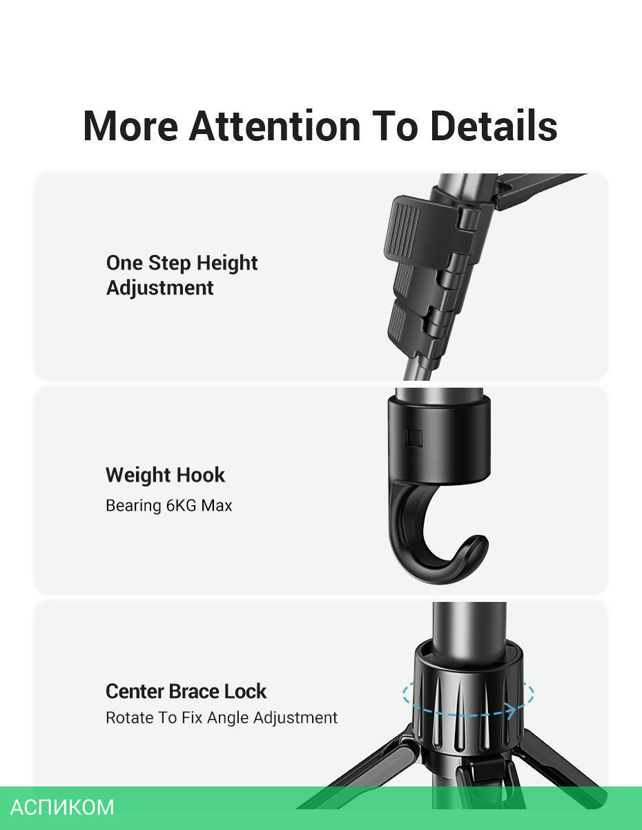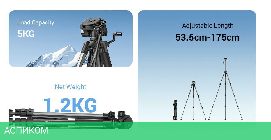 трипод / для фотокамер; для видеокамер; для смартфонов / напольный / 1/4" / да / алюминиевый сплав; пластик / черный